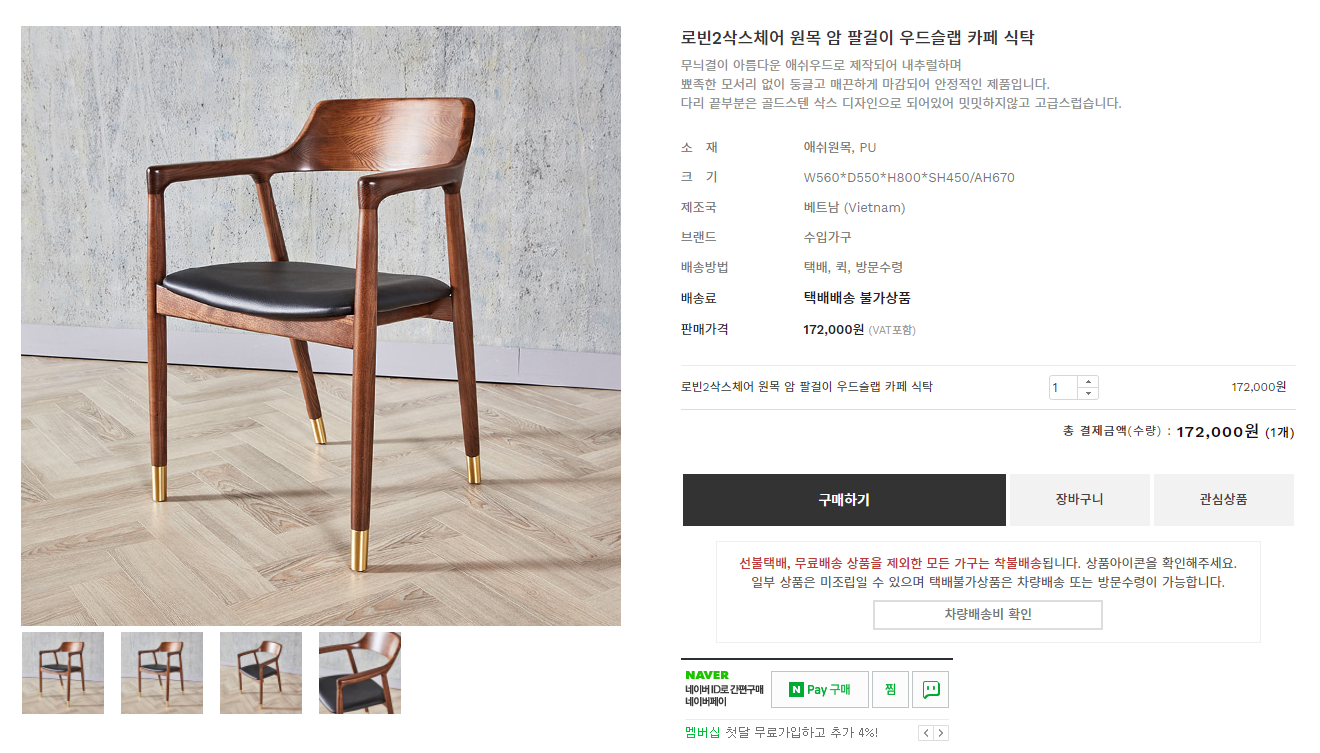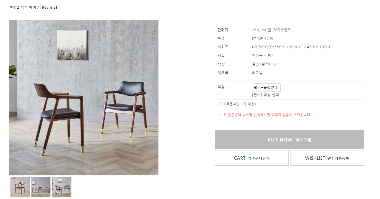 결국은 선택하지 않았는데, 이유는 등받이도 인조가죽이어서 나무의 면적이 적다는 것.