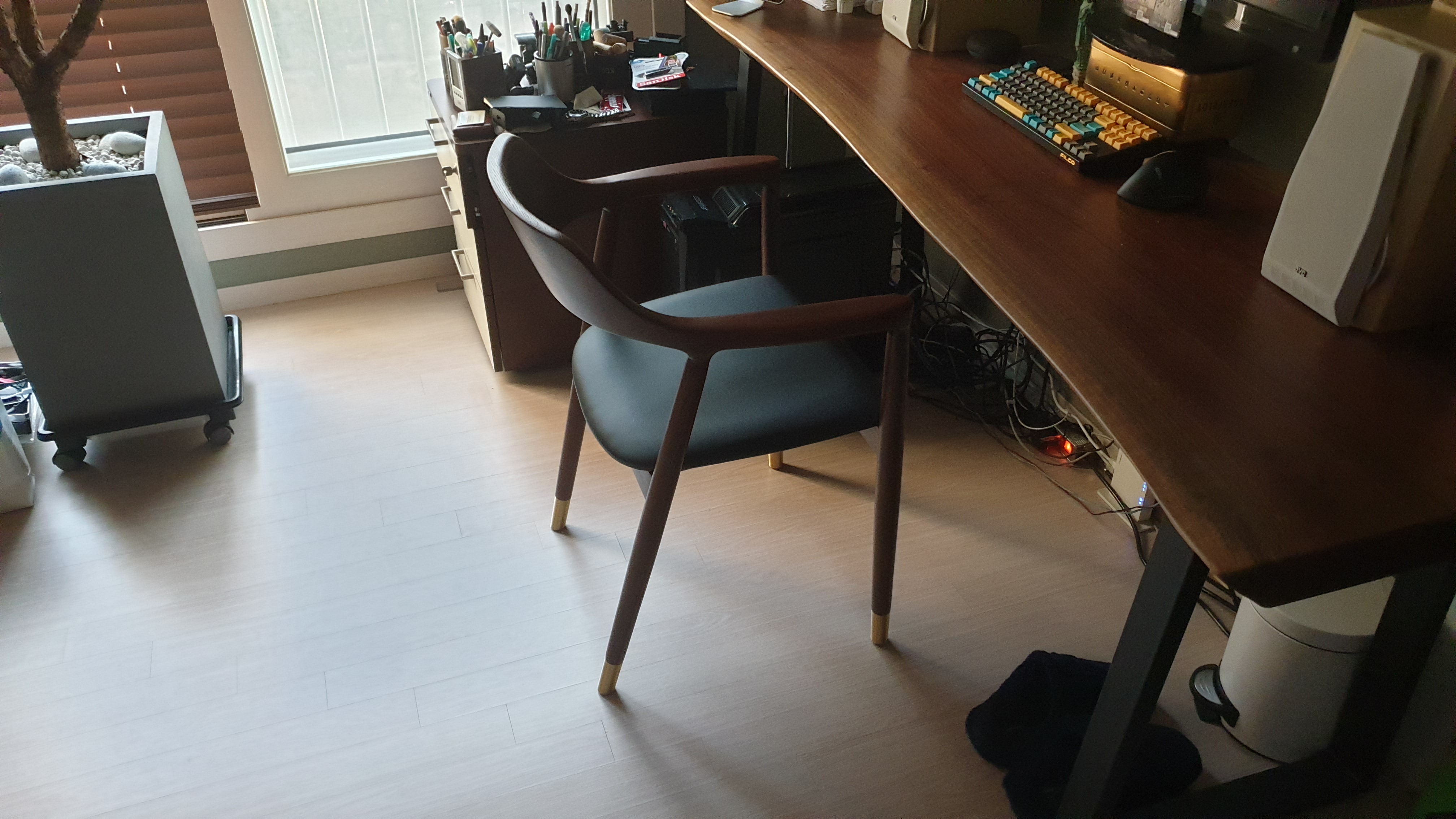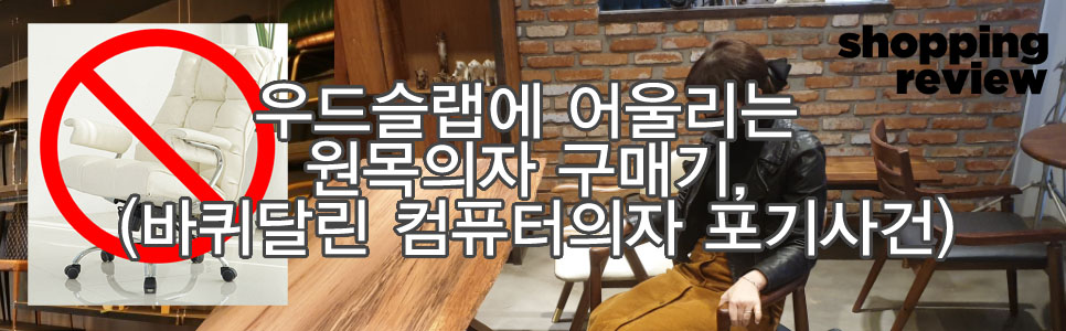 우드슬랩과 컴퓨터 의자는 안 어울린다.