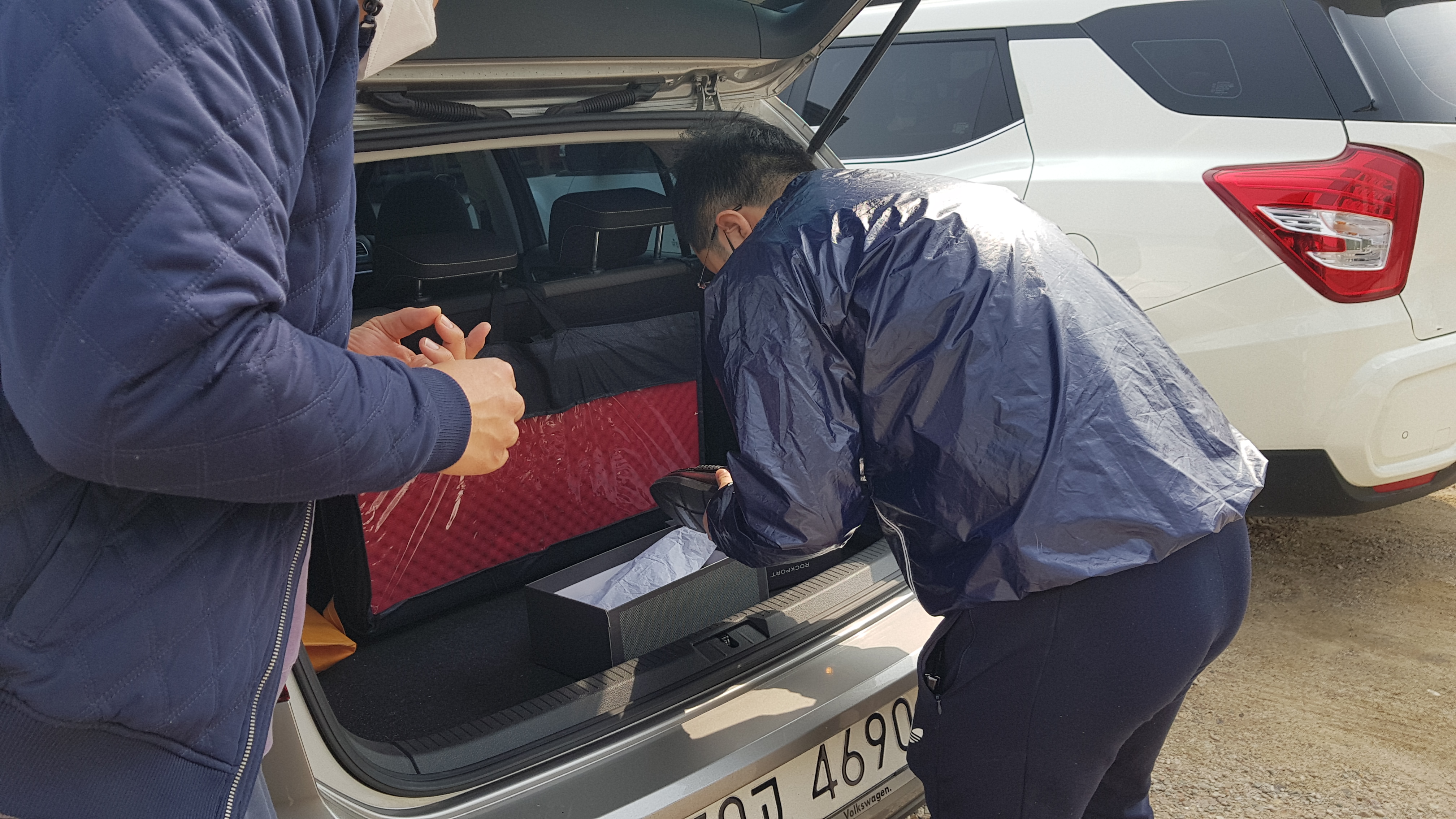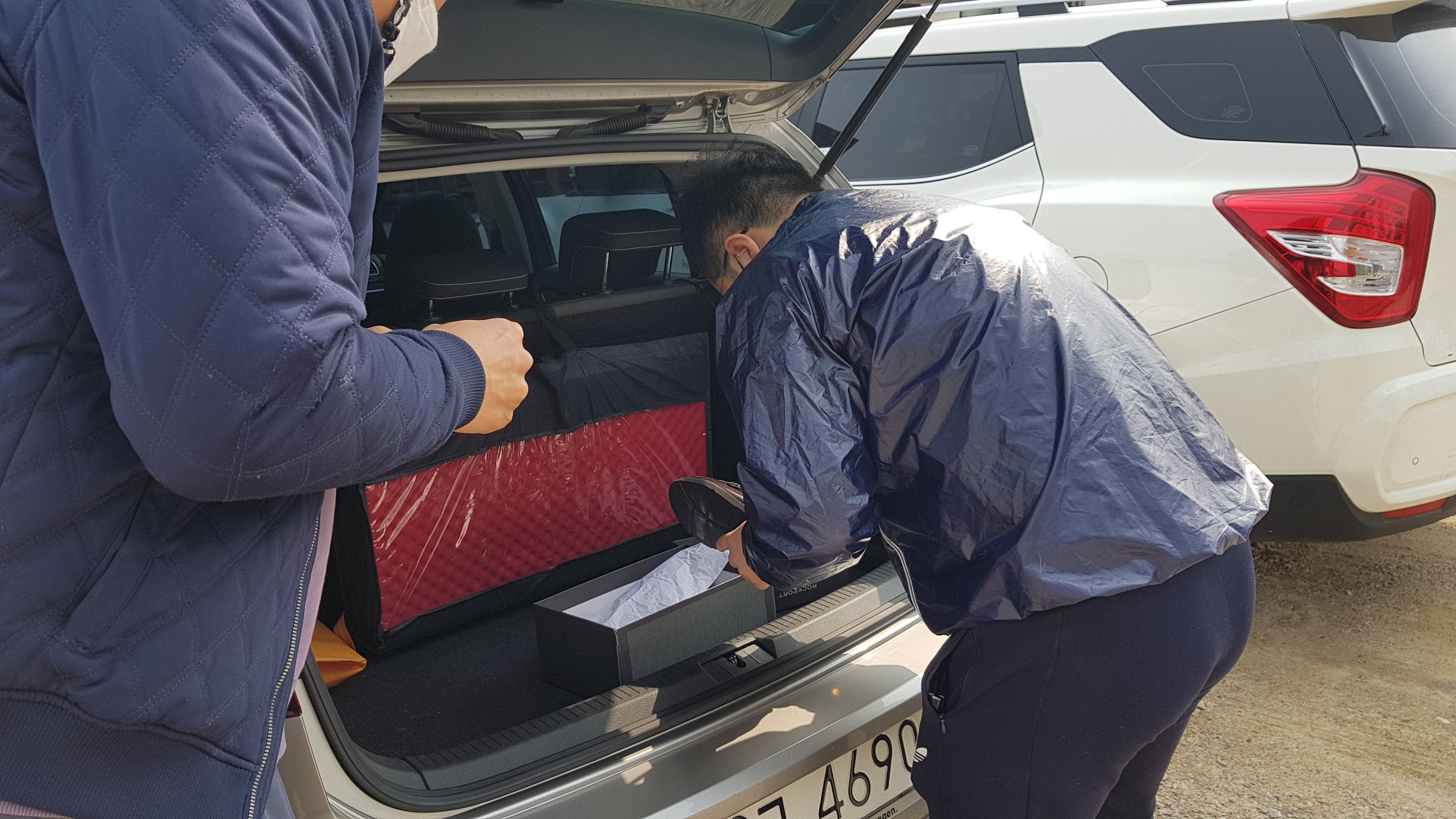 트렁크를 열고 물품 확인을 진행한다. 최초 발주때의 제품이 맞는지, 사이즈와 컬러는 맞는지를 확인한다.