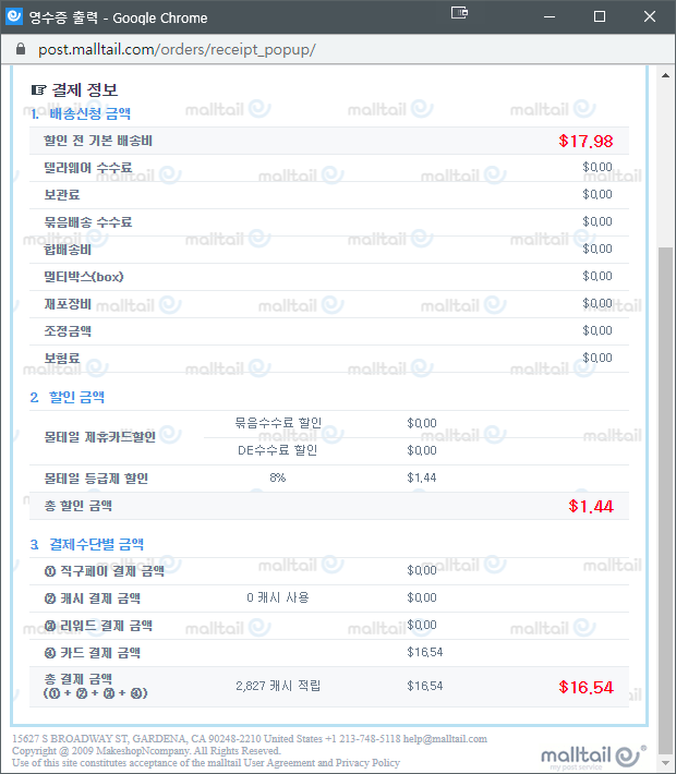 한번에 한 제품만 구입한게 아니었다. 몰테일 열차가 출발할때 다른것도 꽉 채워서 구입하느라 아래의 배송비 책정은 무게와 부피가 더해져 나오므로 어디까지나 참고용으로만 봐주시기를 부탁드린다.