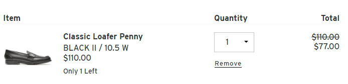 110달러의 제품이 77달러로 할인 적용된 것을 볼 수 있다.