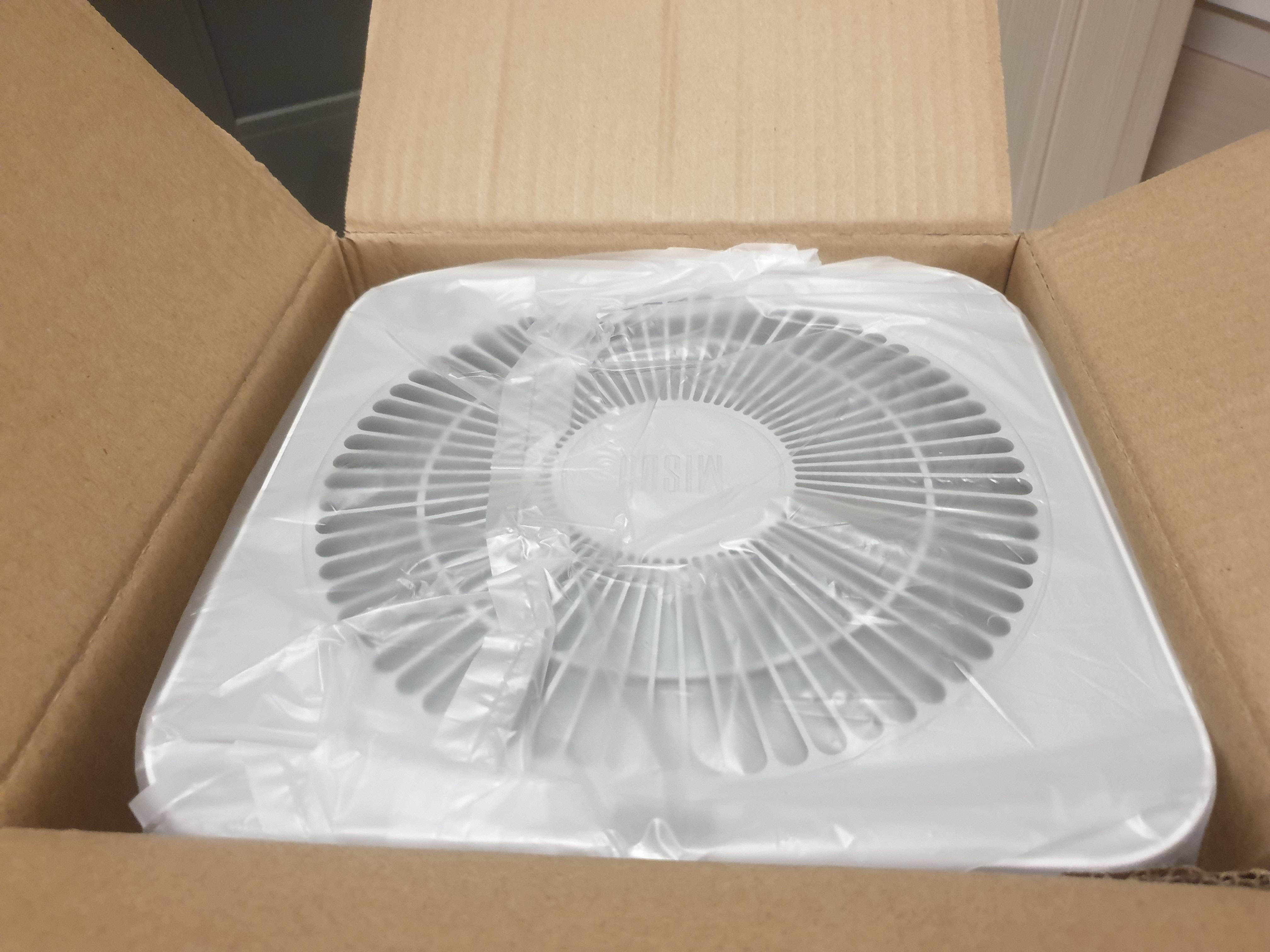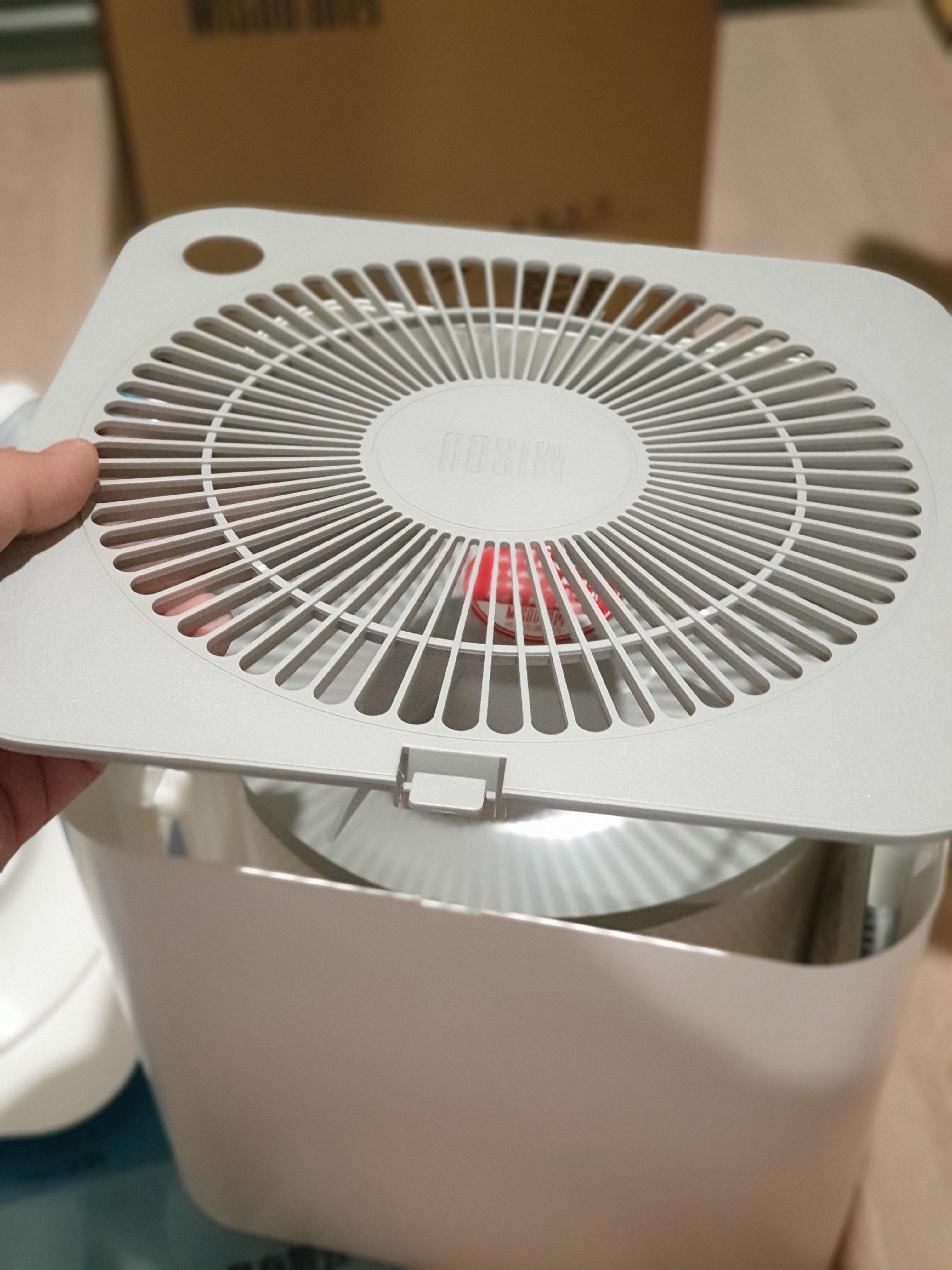 이 제품은 팬이 들어있는 제품이 아니기때문에 팬이 들어있지는 않고, 상단에 공기배출구에 기존 샤오미 공기청정기 제품과 같은 커버가 있다.