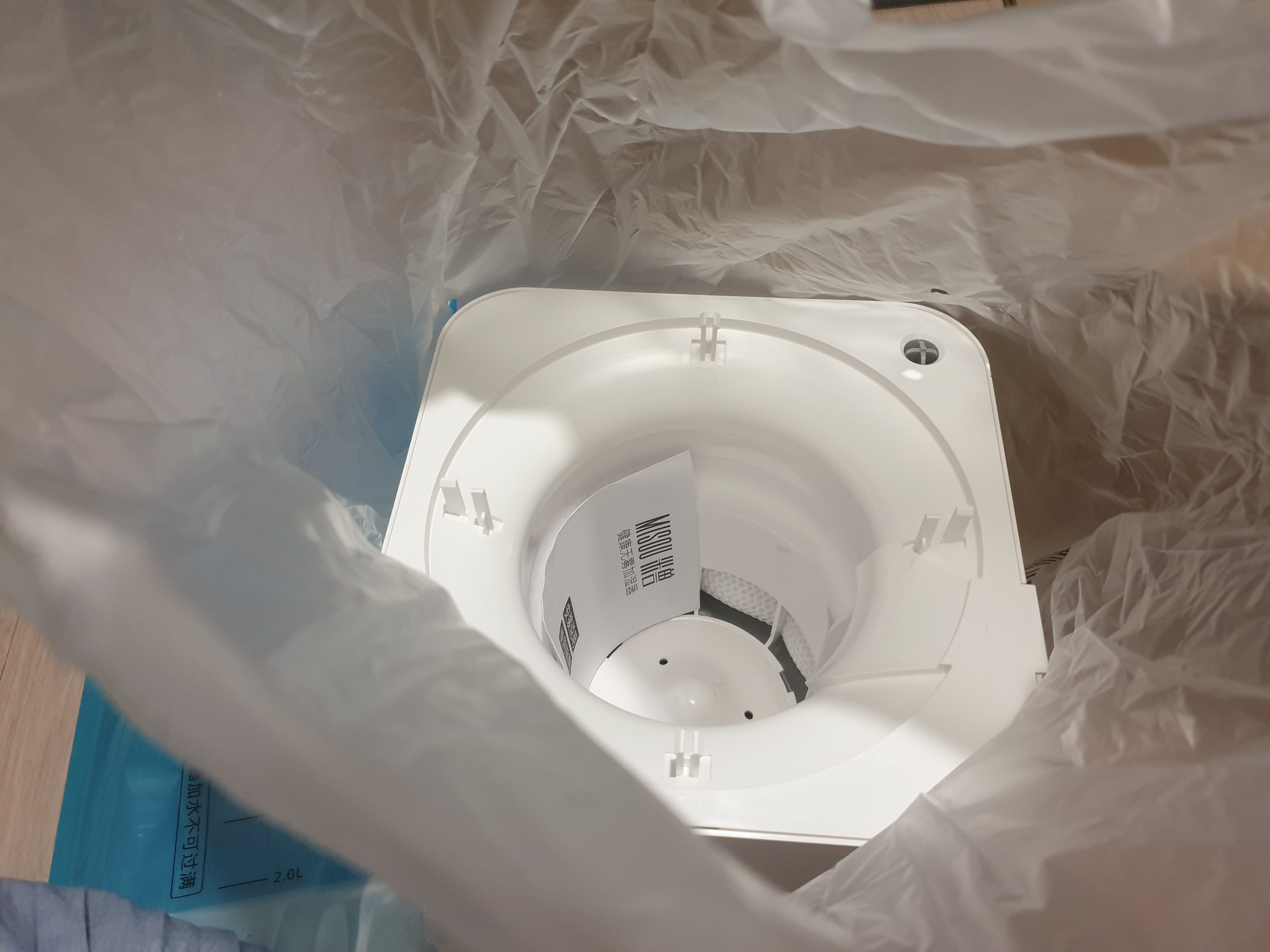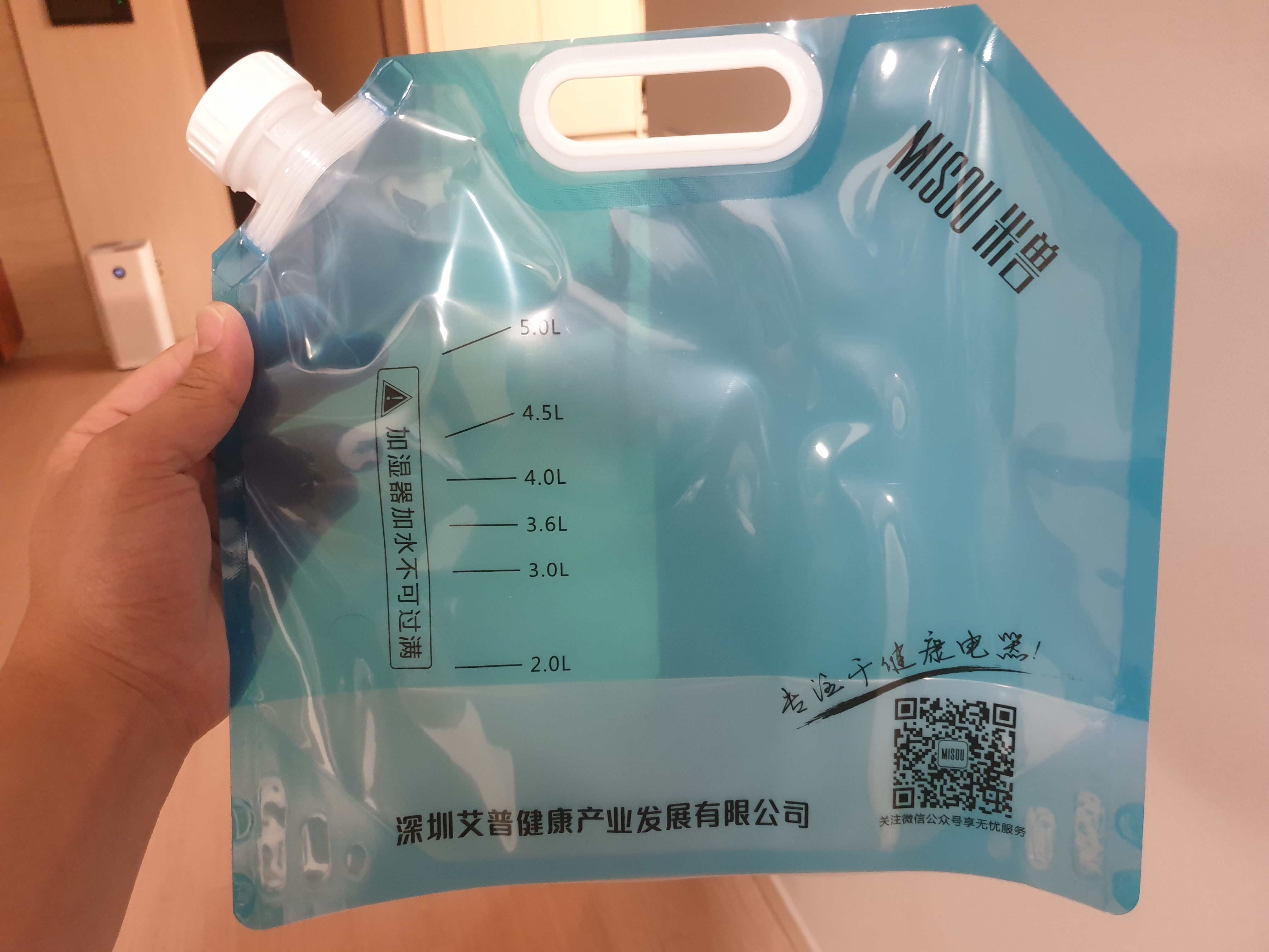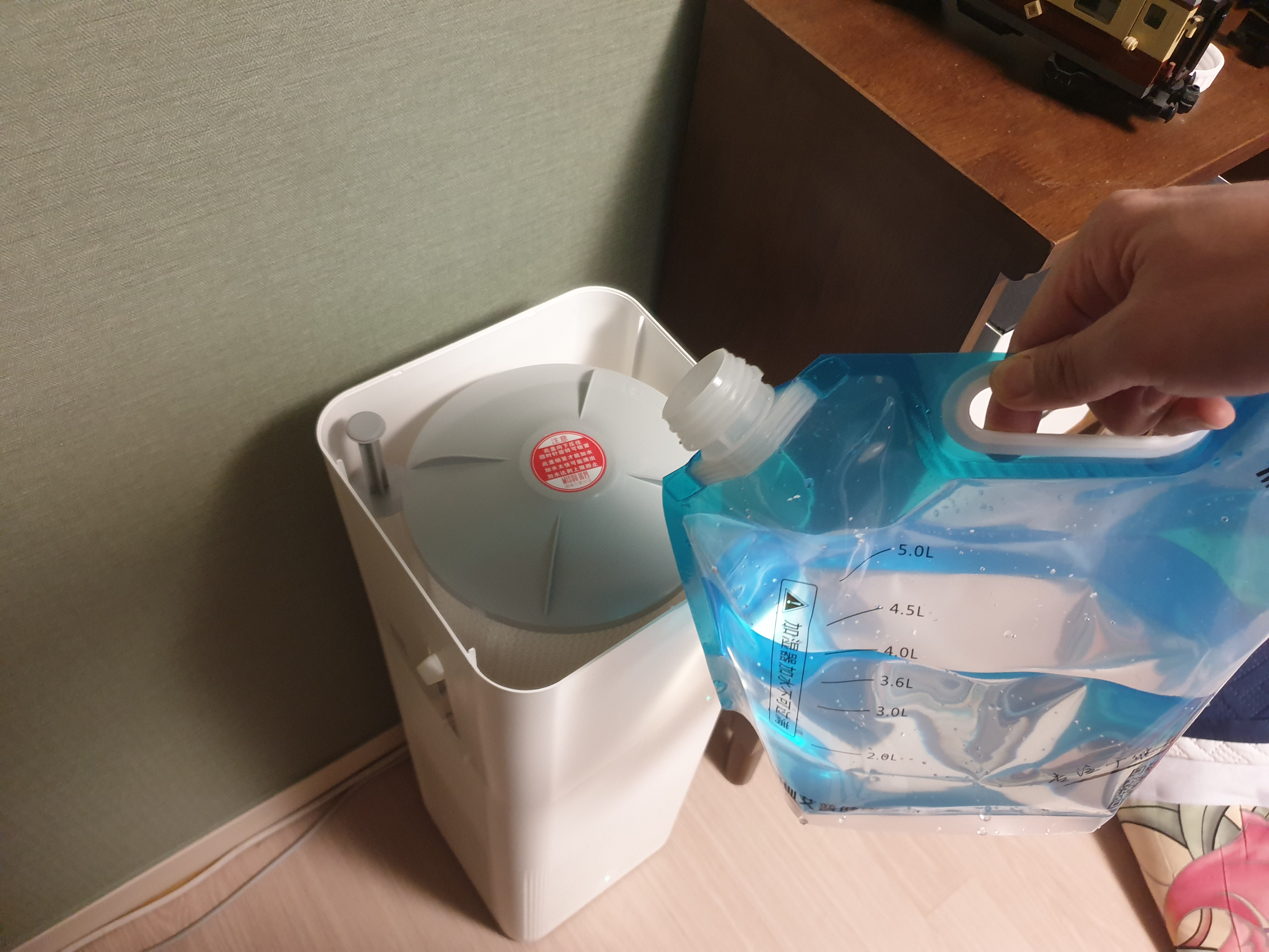 동봉되어있는 물을 넣는 물통. 이 물통이 제품 내에 넣는 용도가 아니라 제품 내에 물을 공급하는 용도로 사용하는 것이다. 미래보여도 5리터까지 물을 담을 수 있다.