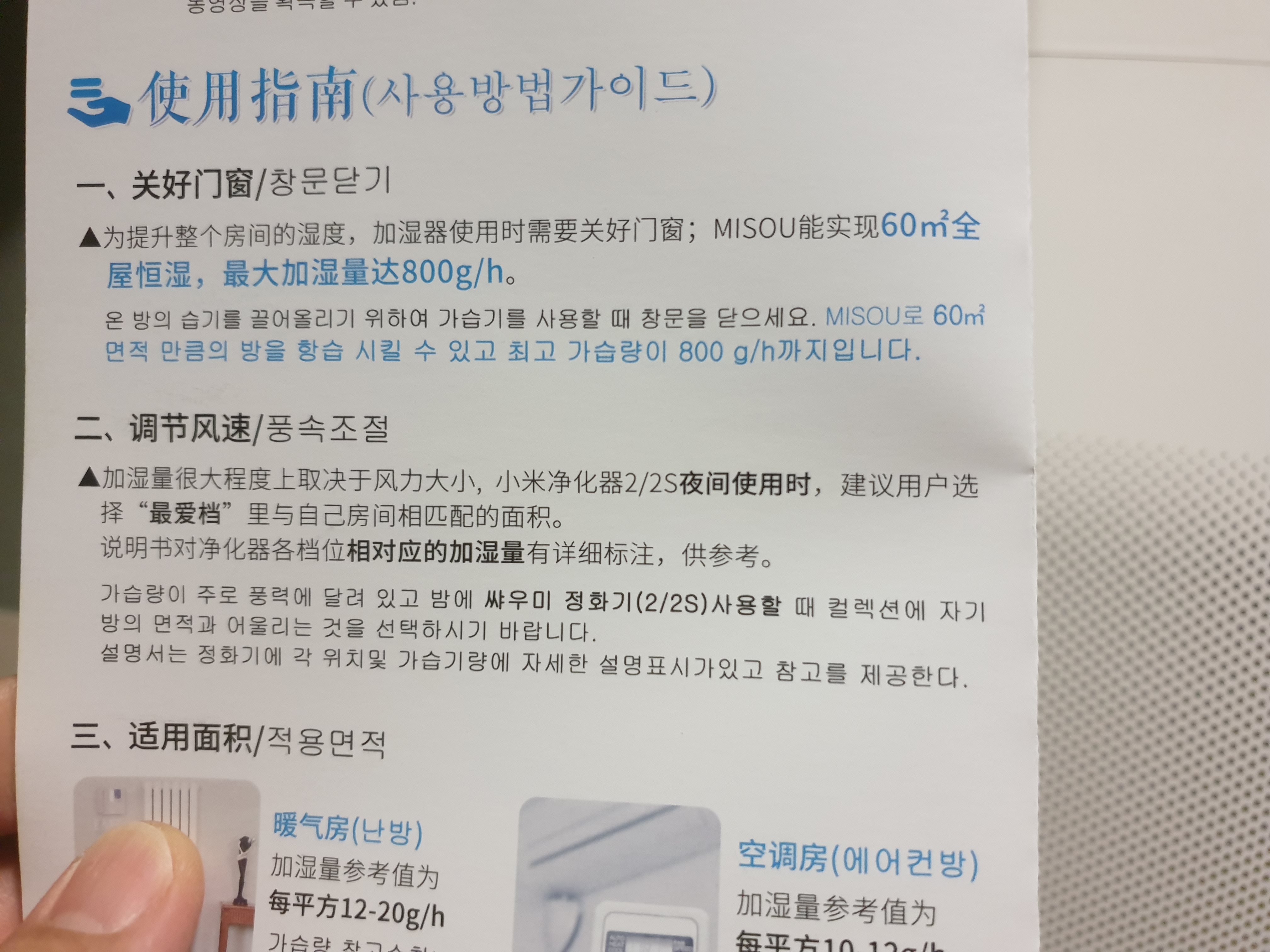 60㎡의 면적에 대한가습량은 800g/h라고한다.