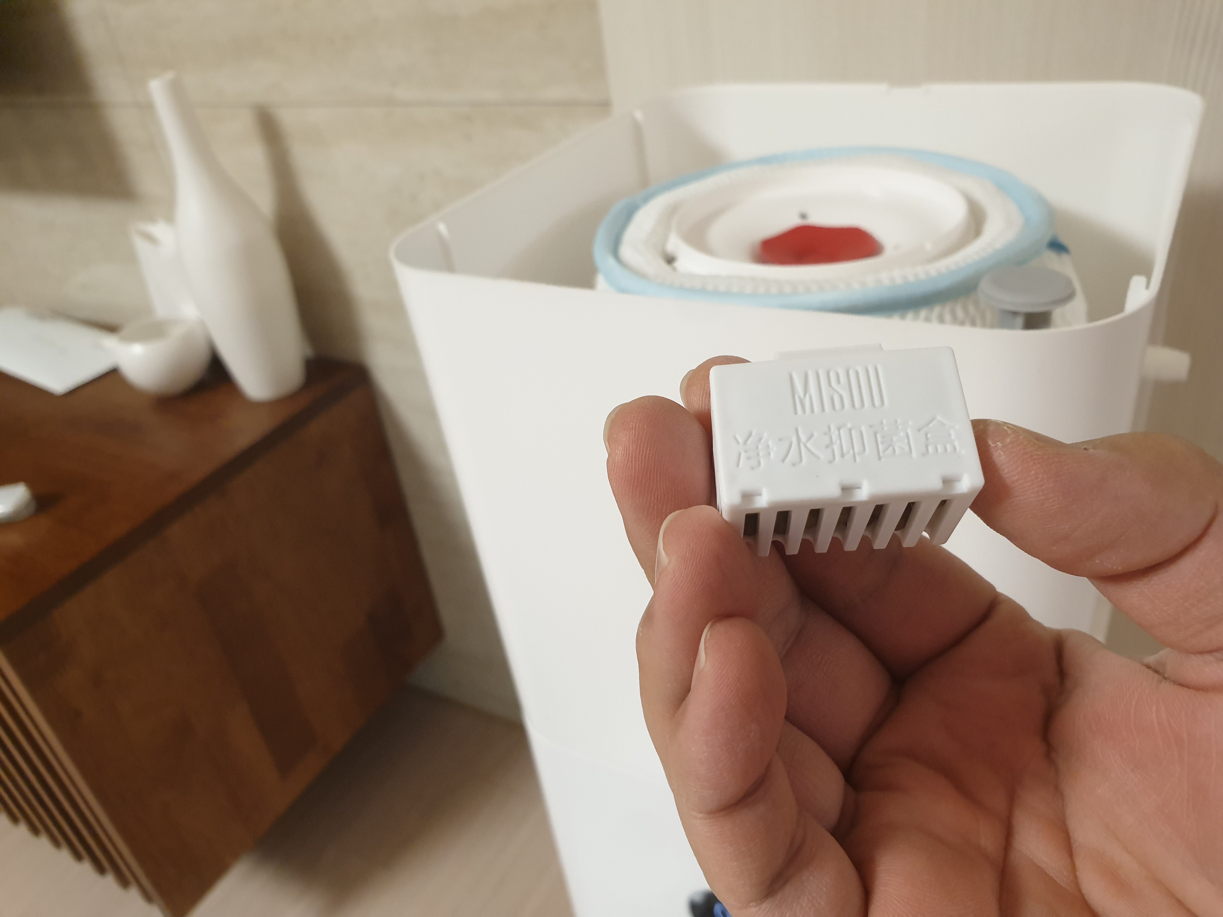 이 MISOU 가습기 제품의 첫버전에는 종이로 된 필터가 들어있었다. 그 제품은 필터를 물로 세척해줄 수 없을 뿐만 아니라 내구성도 좋지 않았다.
