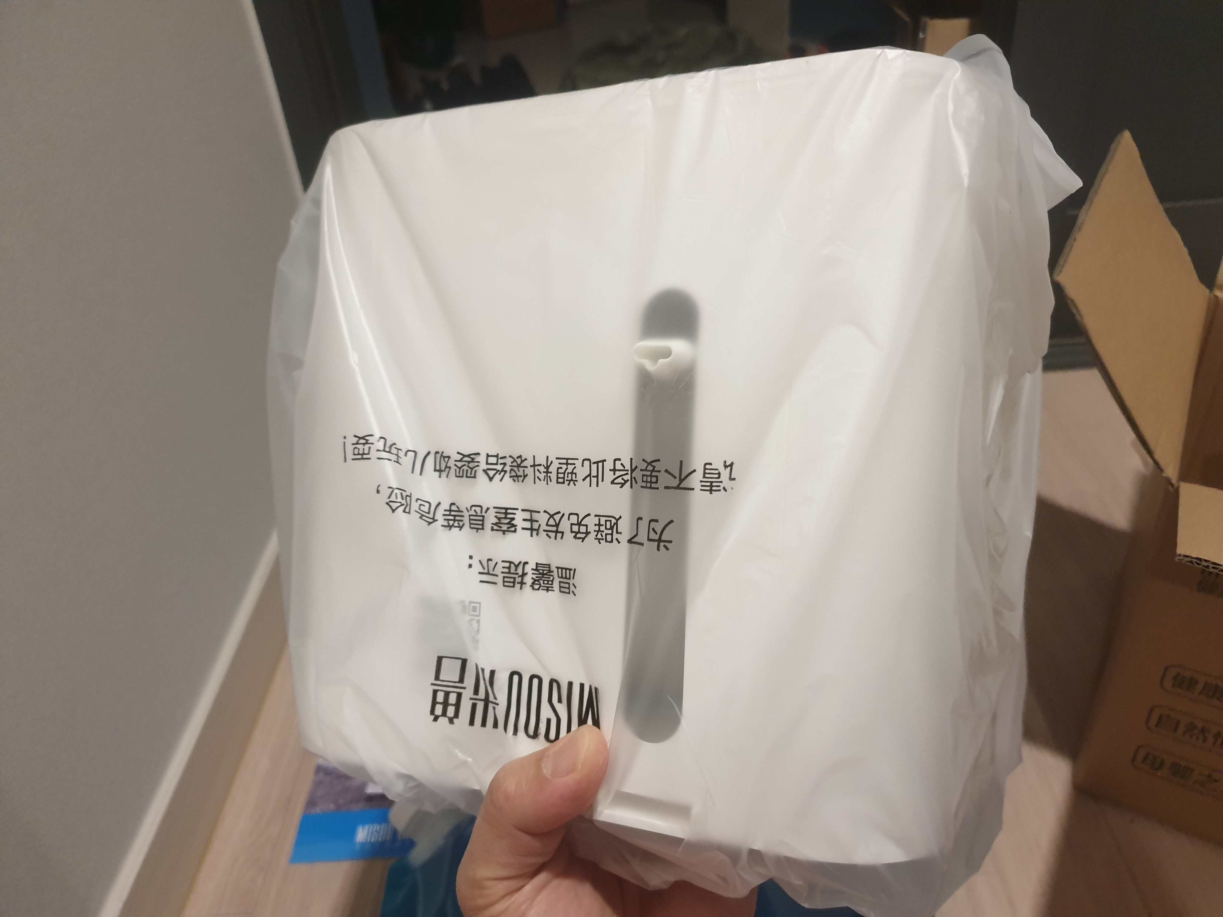 종이박스 바깥에 중국 특유의 쌀포대포장으로 물건이 배송되어져왔다. 쌀포대를 제거해본다. 그럼 안쪽에 제품박스가 나타난다. 반송이 불가한 스타일의 포장방식. 박스는 얇다.