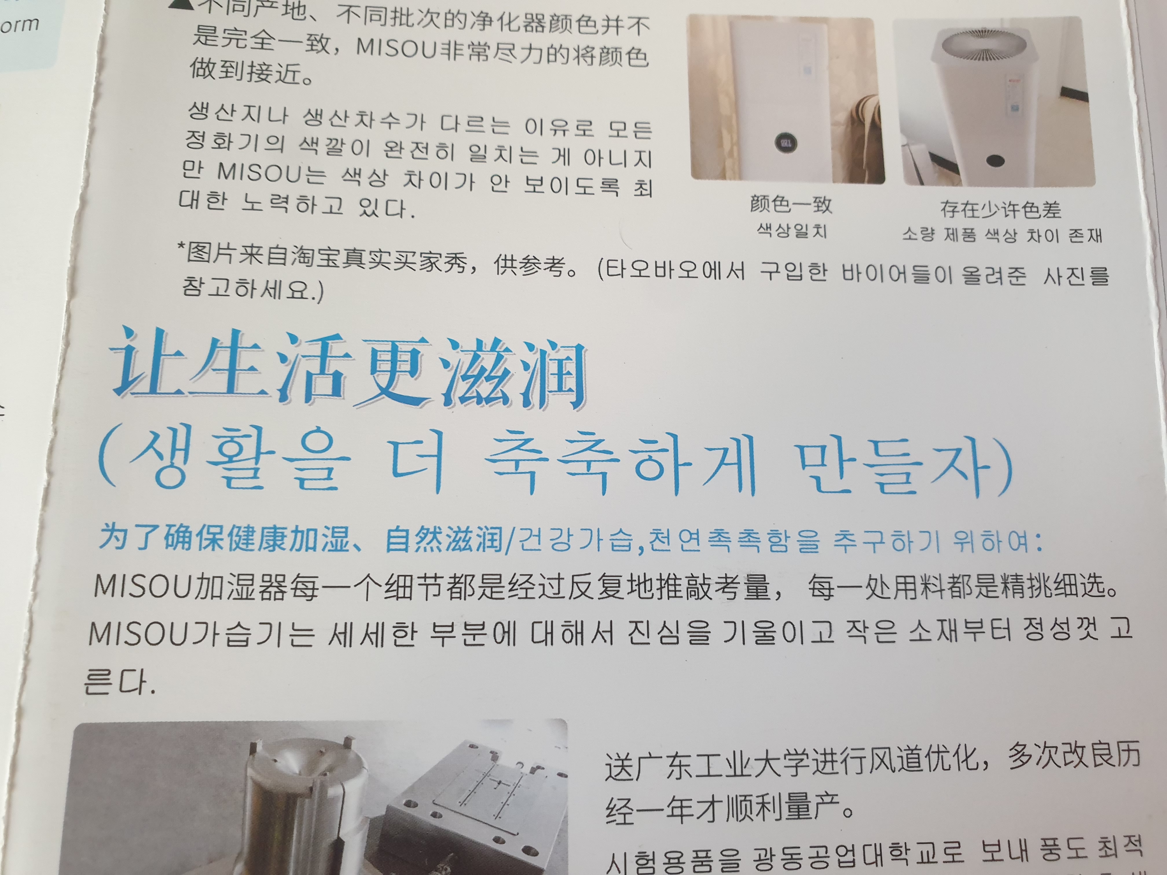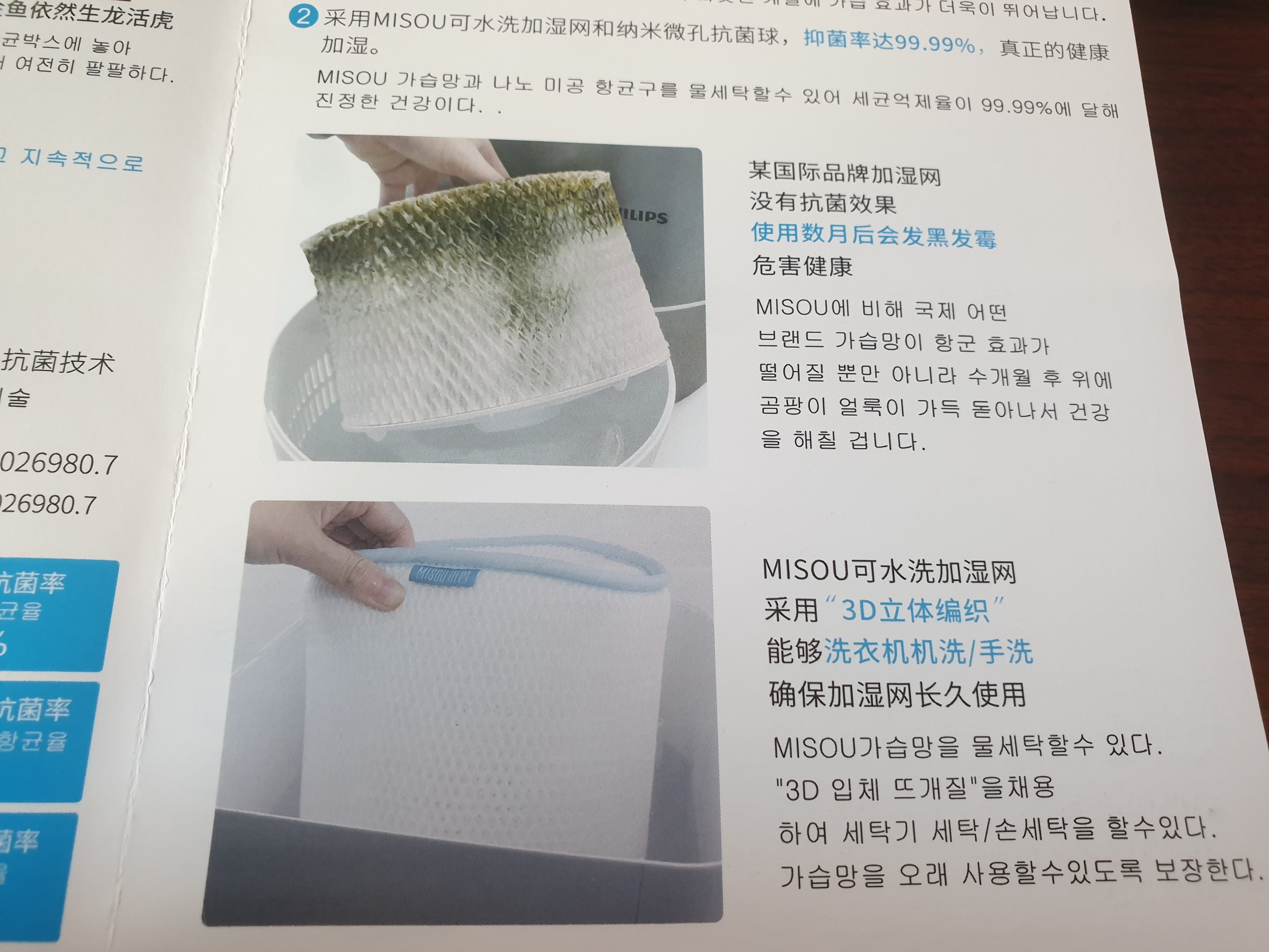 이 이미지 역시 마찬가지다. 제품에 첨뷰된 가습망이 아래의 제품이라고 해서 안심할 것이라고 생각했나본데 천만의 말씀이다. 위의 혐오스러운 곰팡이와 얼룩을 보여준것만으로 그것이 일부라도 내가 사용하는 제품에 해당할 것이라는 인간의 상상력을 불러일으킨다.