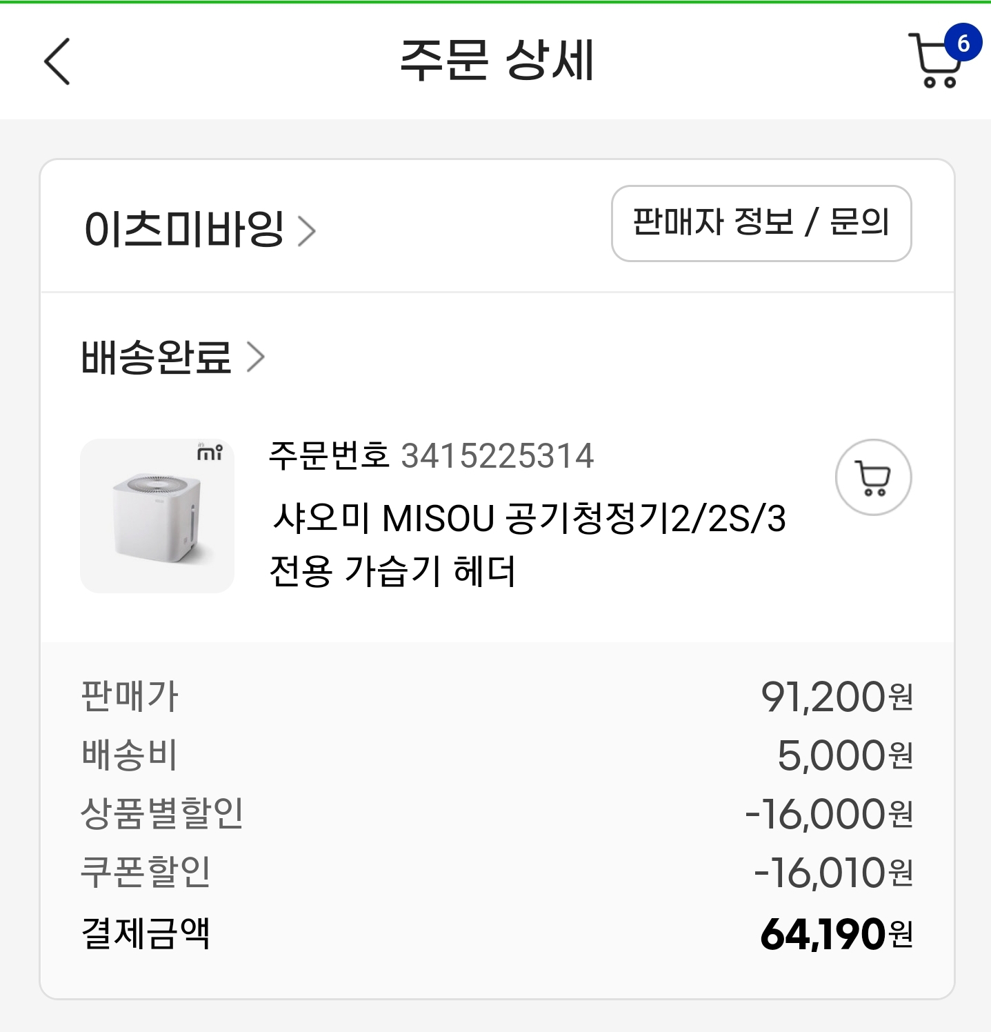 배송비를 제외하면 약 5만9천원정도에 2개를 주문. 1개에 29,500원에 구입했다.