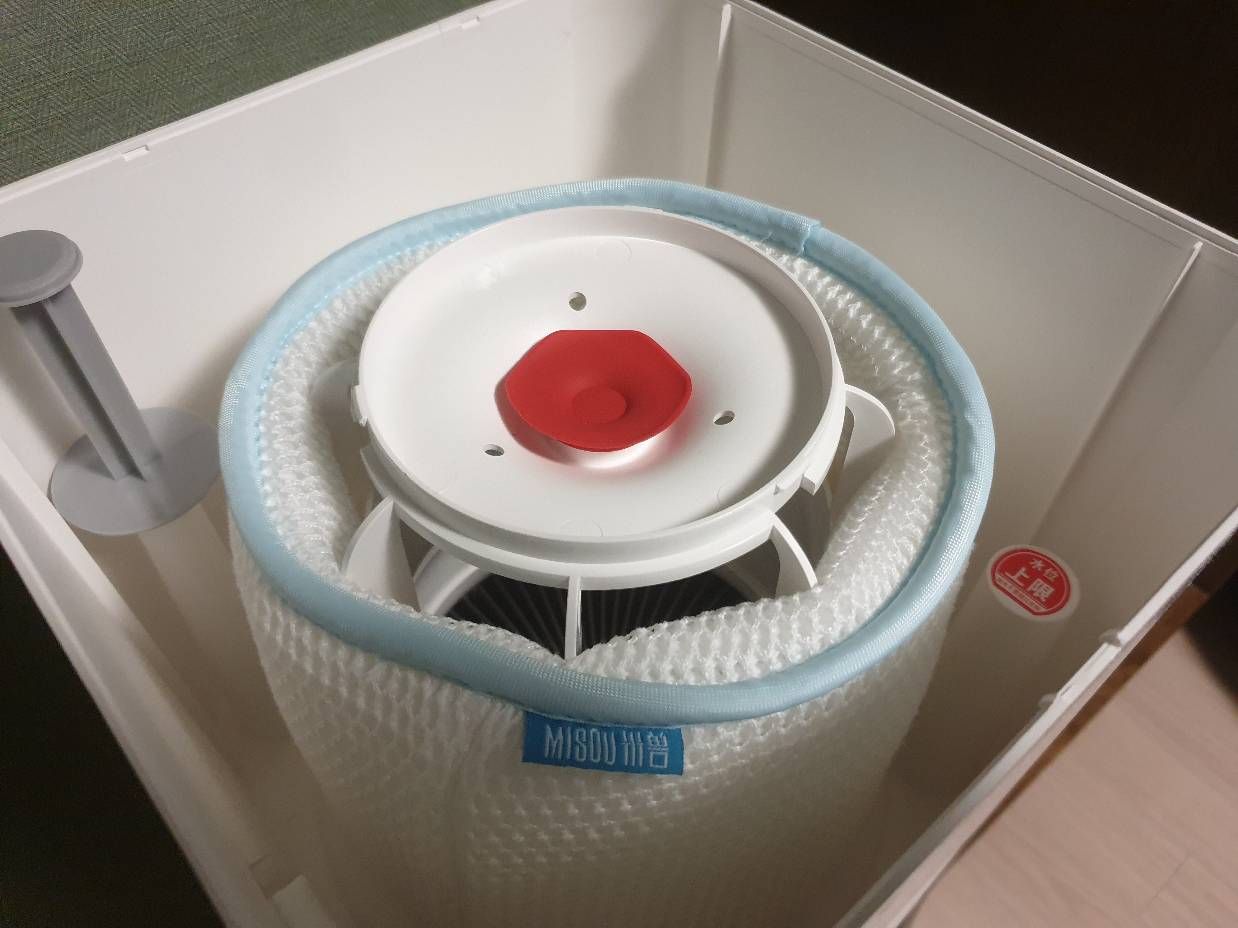 우리가 할 일은 그저 매일 했듯, 샤오미 미에어 공기청정기를 켜주는 것 뿐이다. 그럼 샤오미 공기청정기에서 불어나오는 바람의 힘이 이 Misou 가습헤더로 전달되고 그 바람이 공기청정필터를 말려주면서 자연스럽게 공기청정이 이뤄지게된다.