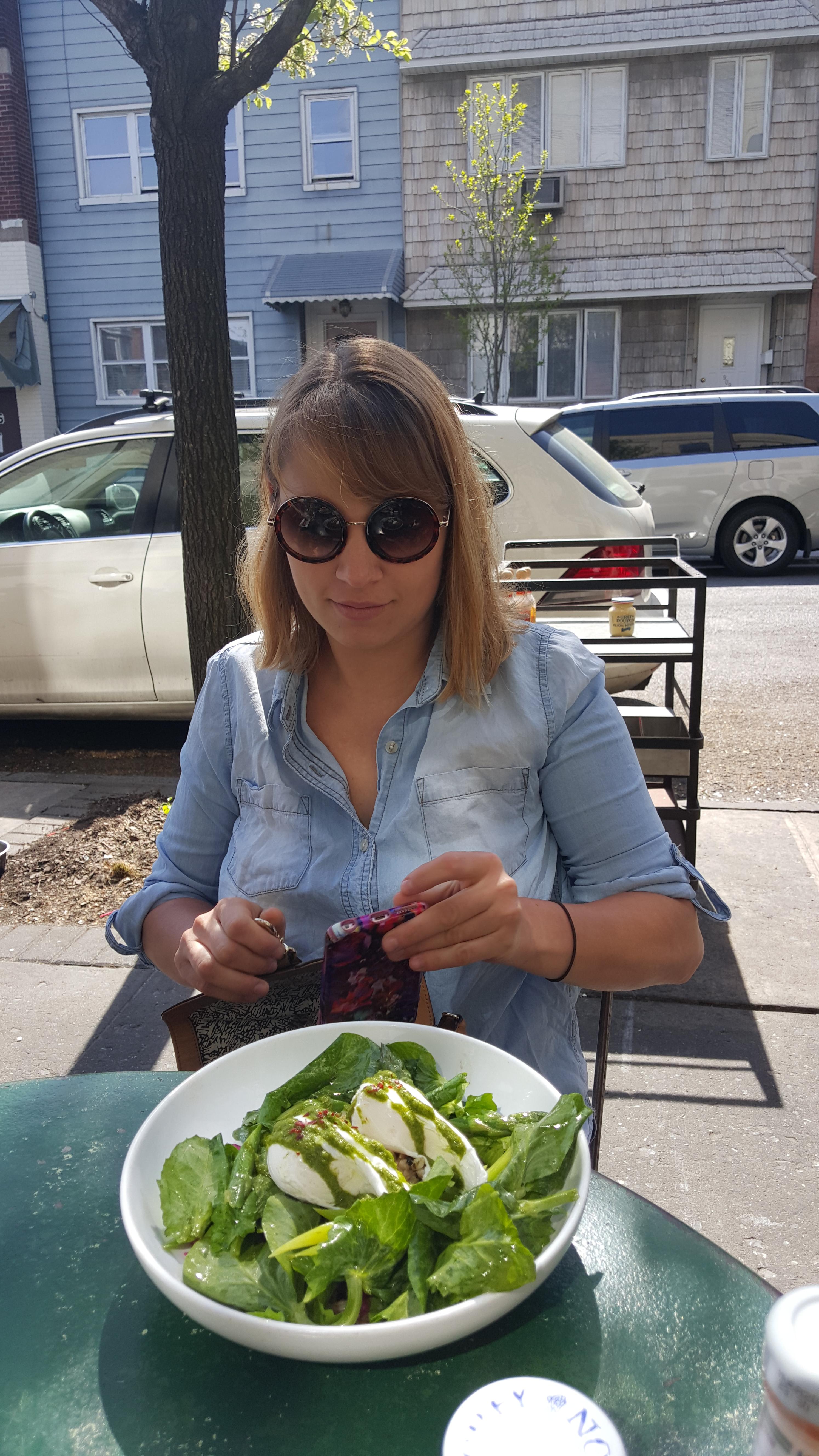 샐러드를 즐기는 로렌. 리코타치즈가 한가득이다.
