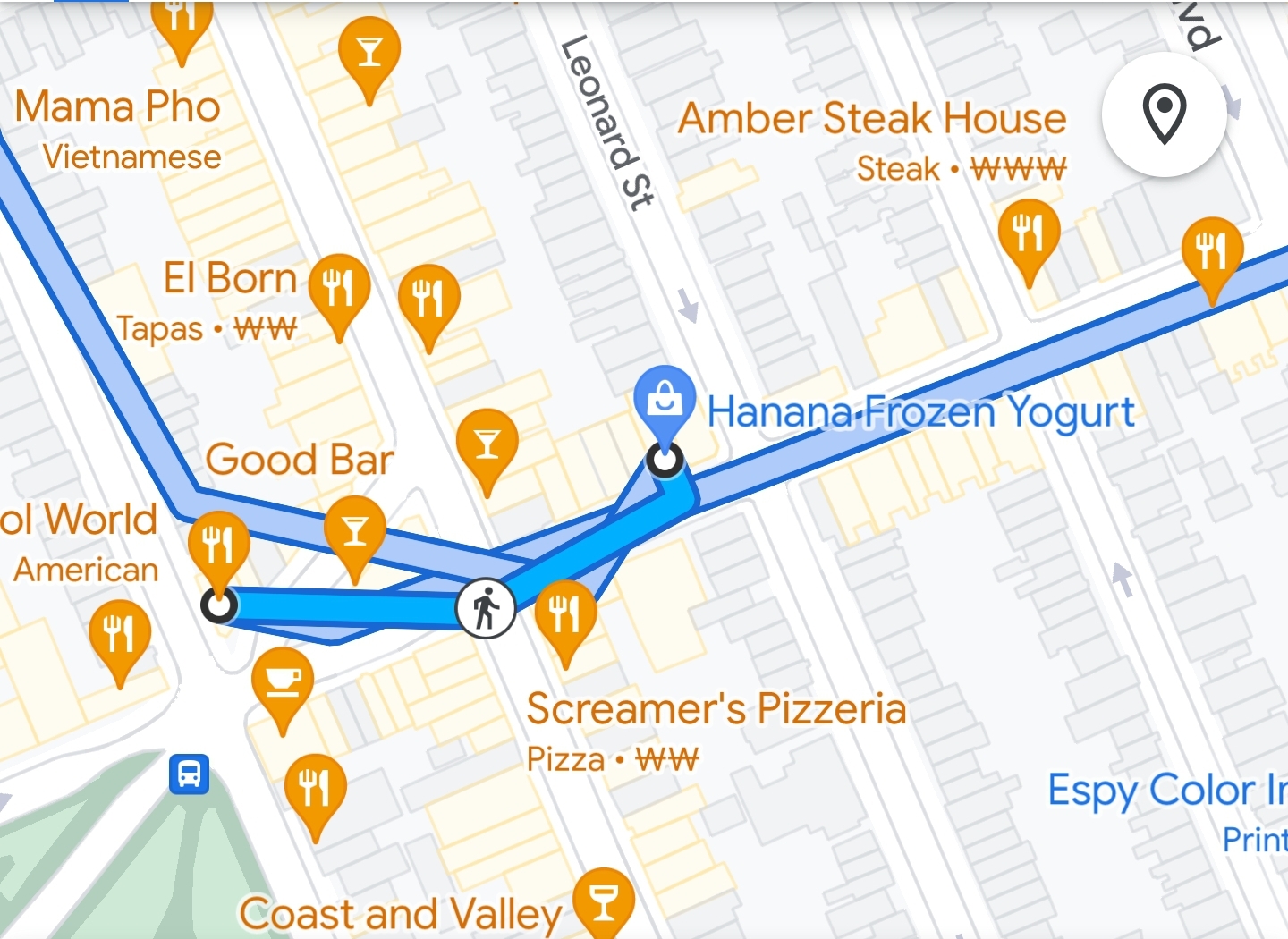 37야드를 걸어 하나나 프로즌요거트로 이동했다.