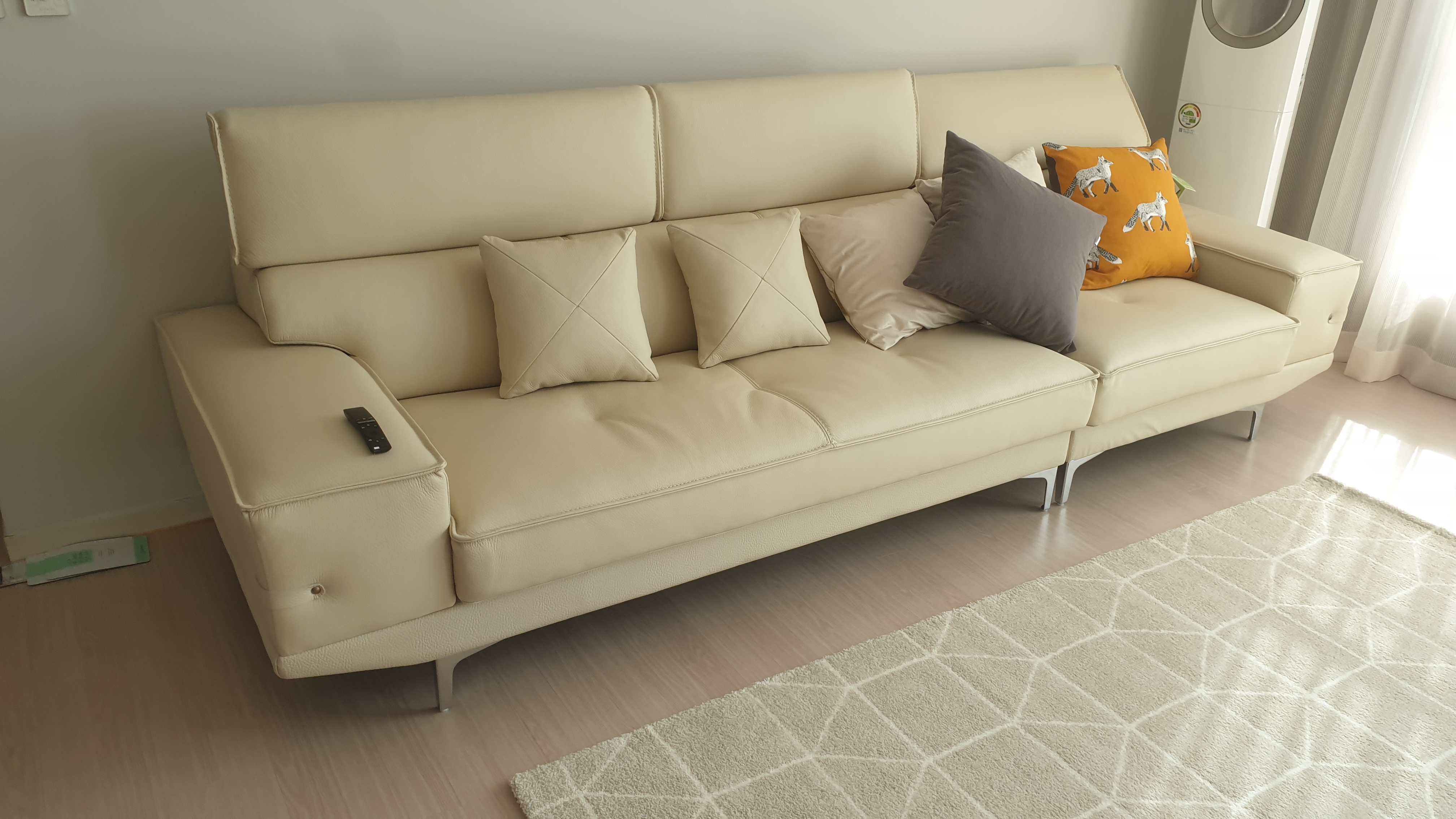 벨기에에서 들여왔다는 제품. 아직 정식으로 쇼핑몰에서 판매는 안하고 반응을 보고 수입을 할지말지 결정하시겠다고 했다. 우측 제품은 긁으면 손자국이 그대로 보였다. 좌측 제품은 연한 아이보리/화이트 계열의 에디터의 집에 잘 어울려 보였다.