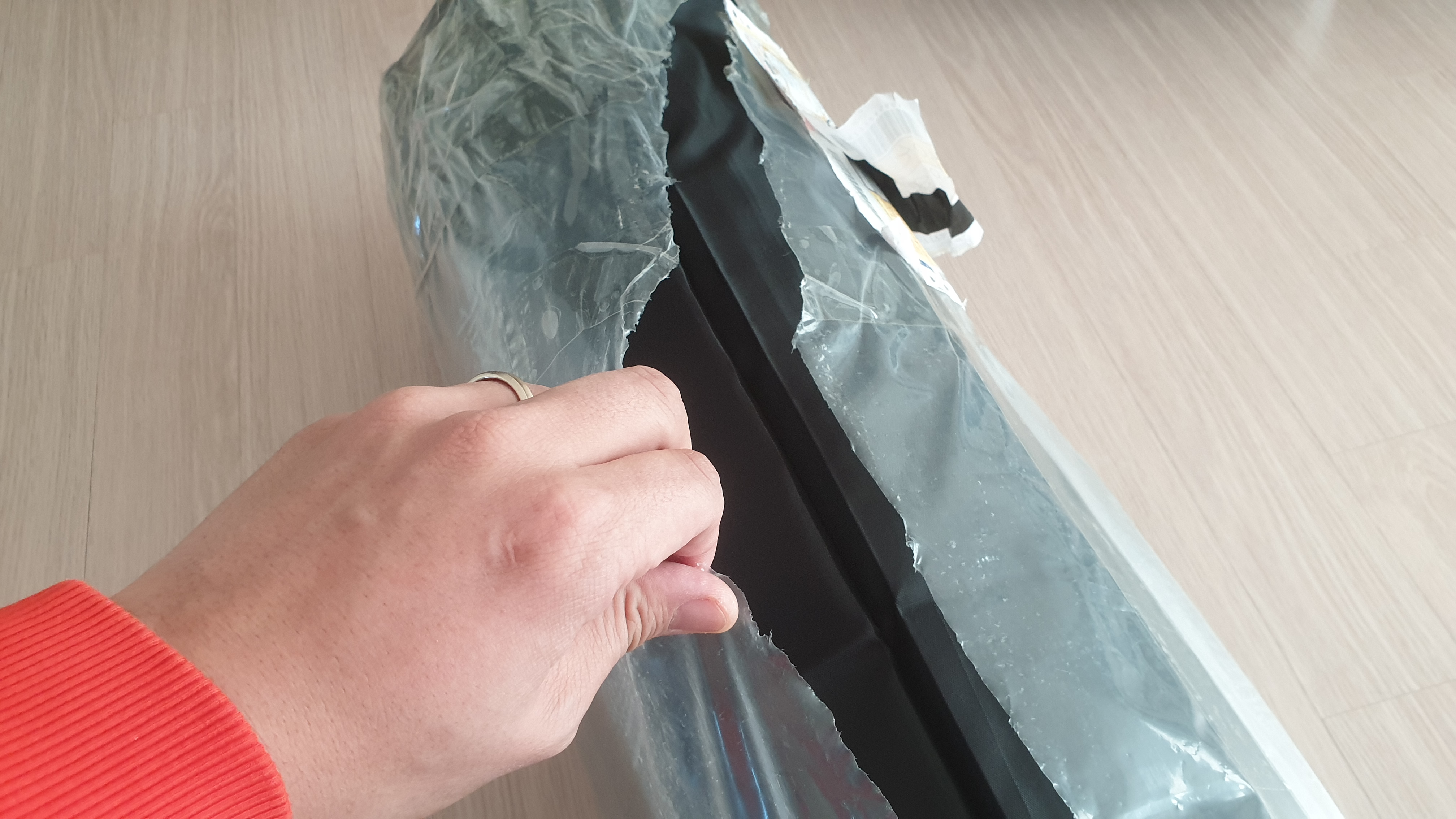 겉의 비닐을 제거하니 안쪽에 카펫 주머니가 보였다.