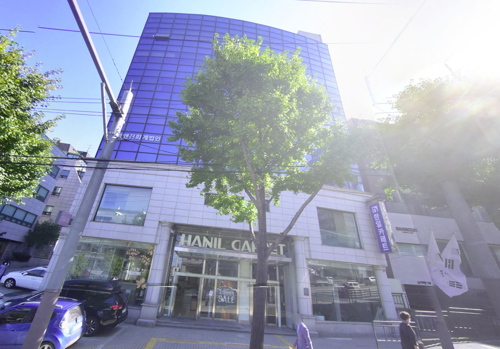 한일 카페트 자체 건물이다. 위쪽은 2층보다 상위 층들은 임대를 주고 있다.