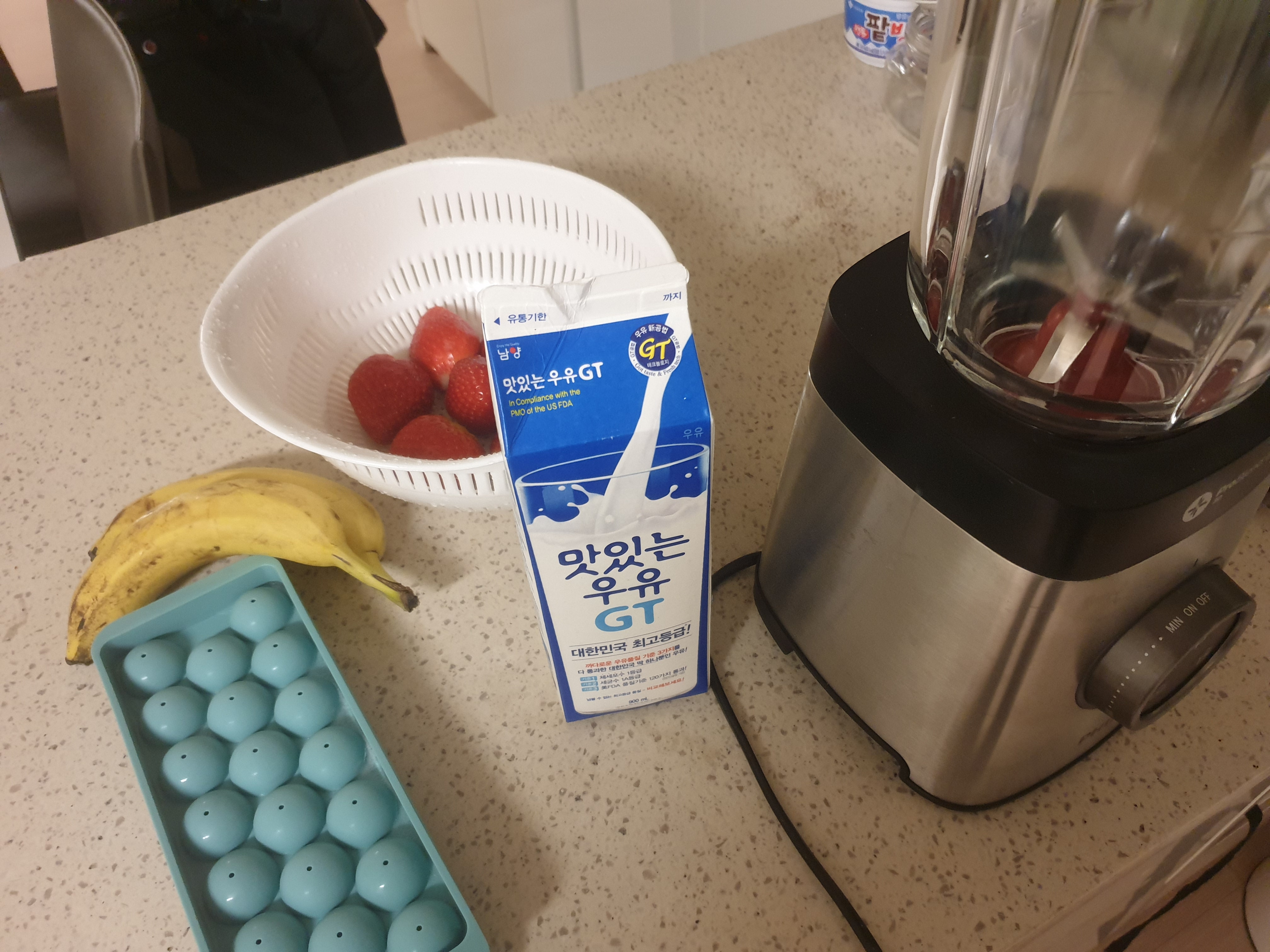 맛있는 베이스가 될 우유도 필요하고, 시원한 '질감'을 더해줄 얼음도 준비한다.