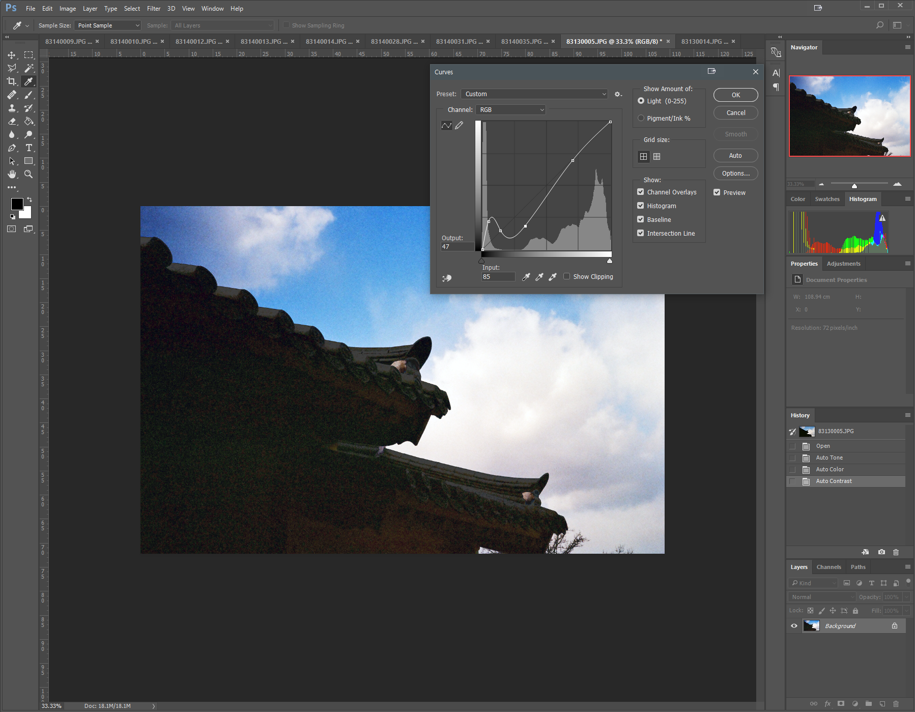 3차곡선을 만들어낸건 이번이 처음이다. 여기서 암부를 더 살리게되면 엄청난 노즈와 함께 사진은 그냥 못쓰게 된다.