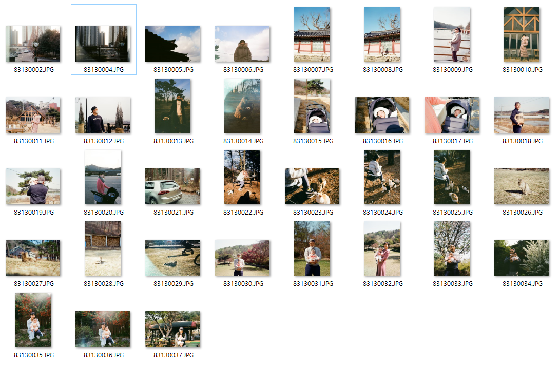 필름이 담고있는 시간의 시작과 끝을 계산해보면 일년중의 대부분을 커버하기에, 이렇게 아껴찍은 필름을 인화했을 때는 계절의 흐름을 볼 수 있다. 그래서 조금 새로운 느낌도 든다.