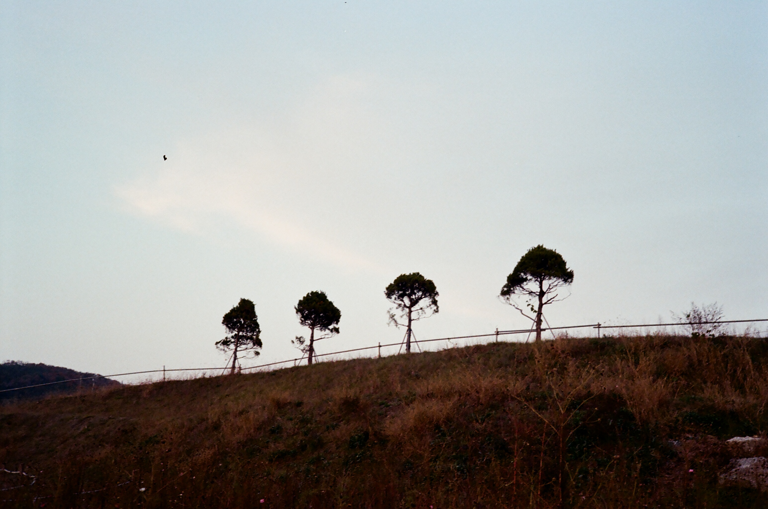 스캔도중에 이물질이 들어간 것 같다. 하늘위에 뭔가 떠있었고, 내가 찍은 나무들의 색이 다 어둡게 죽어있었다.