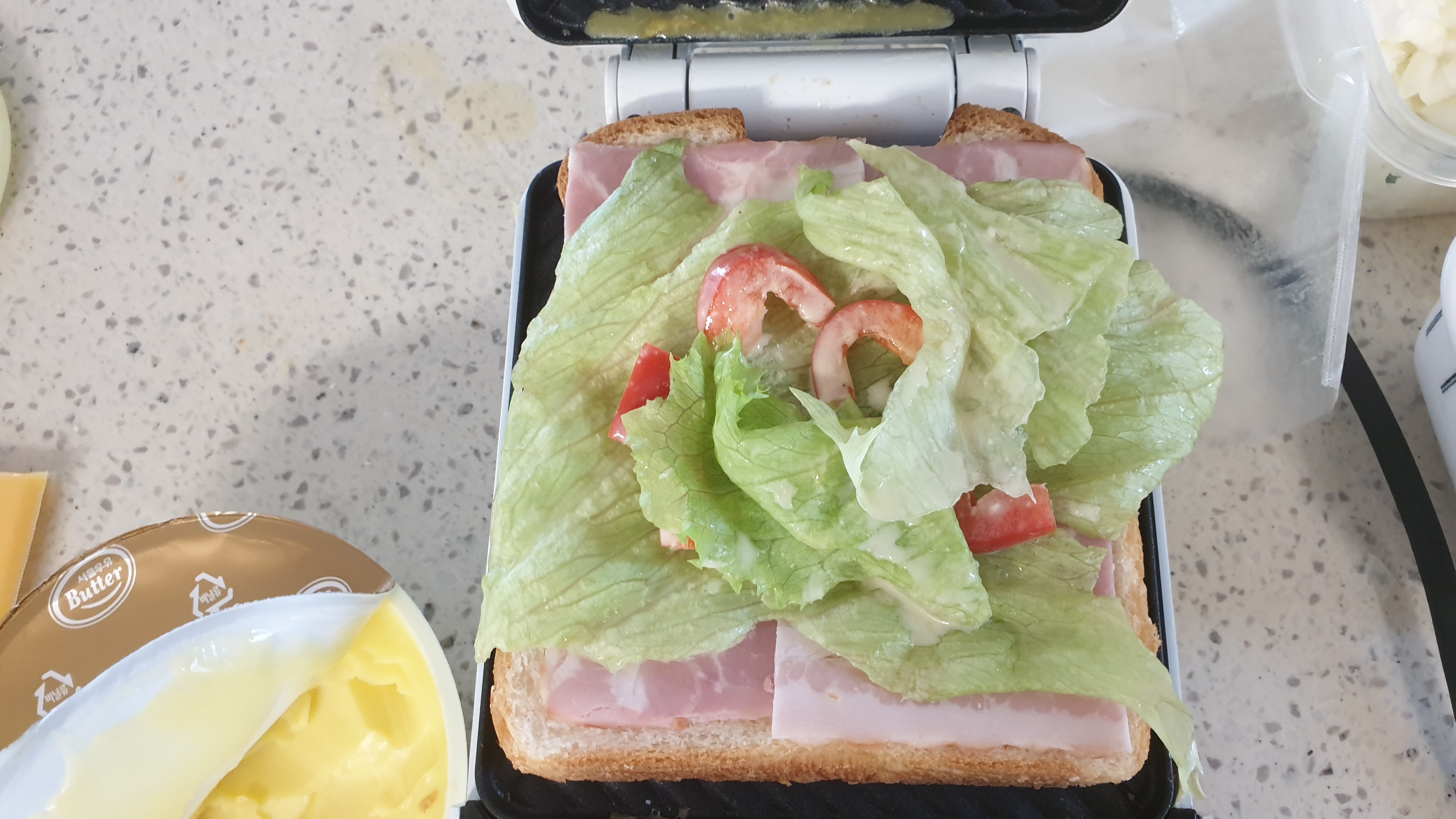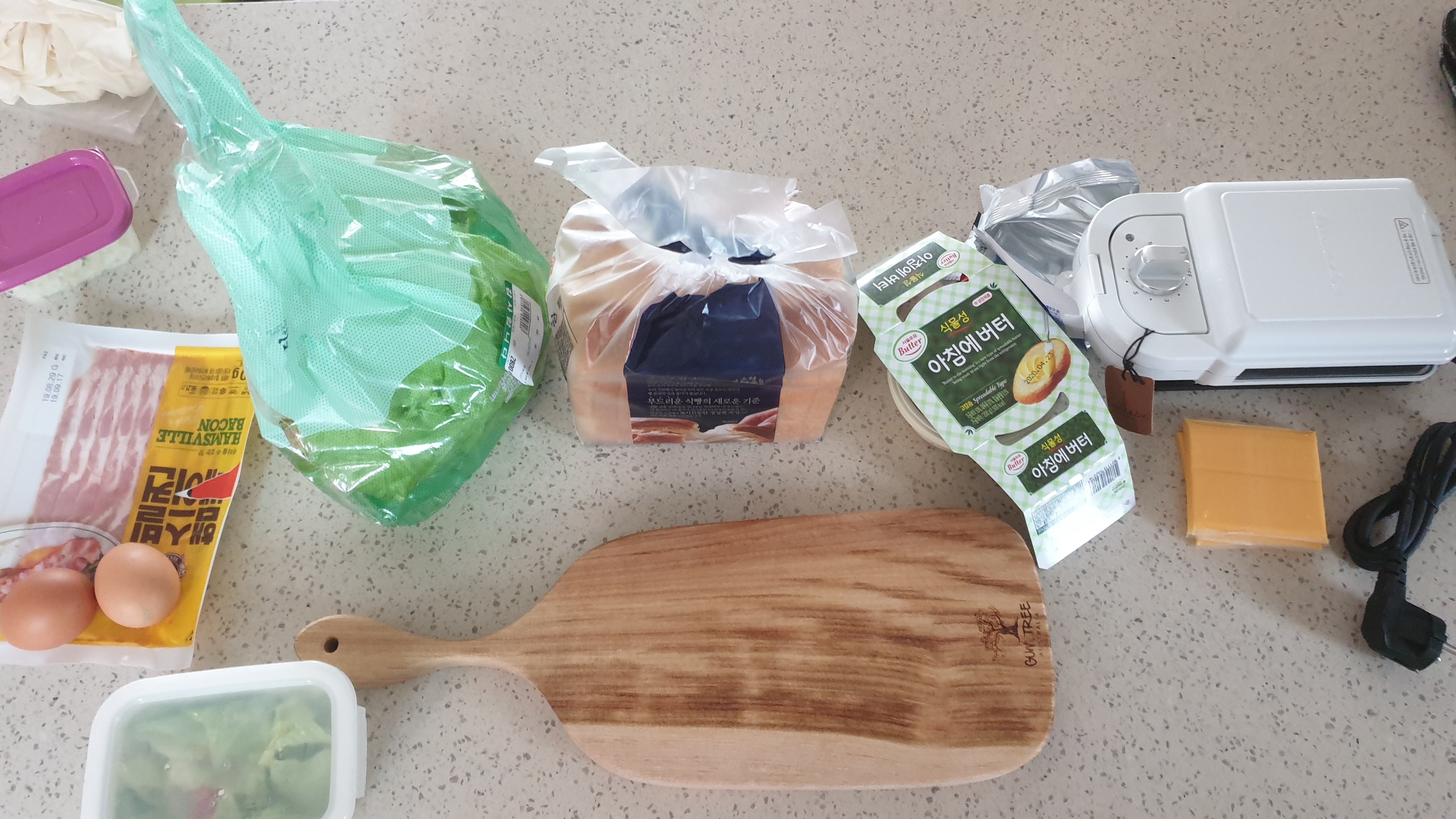 자, 이제 집에 있는 재료들로 샌드위치를 만들어보자. 이 라쿠진 샌드위치 메이커가 얇게 만들어줄테니까 나는 한번 닥치고 때려넣어보아야겠다. 그러면서도 최대한 엘레강스하게.