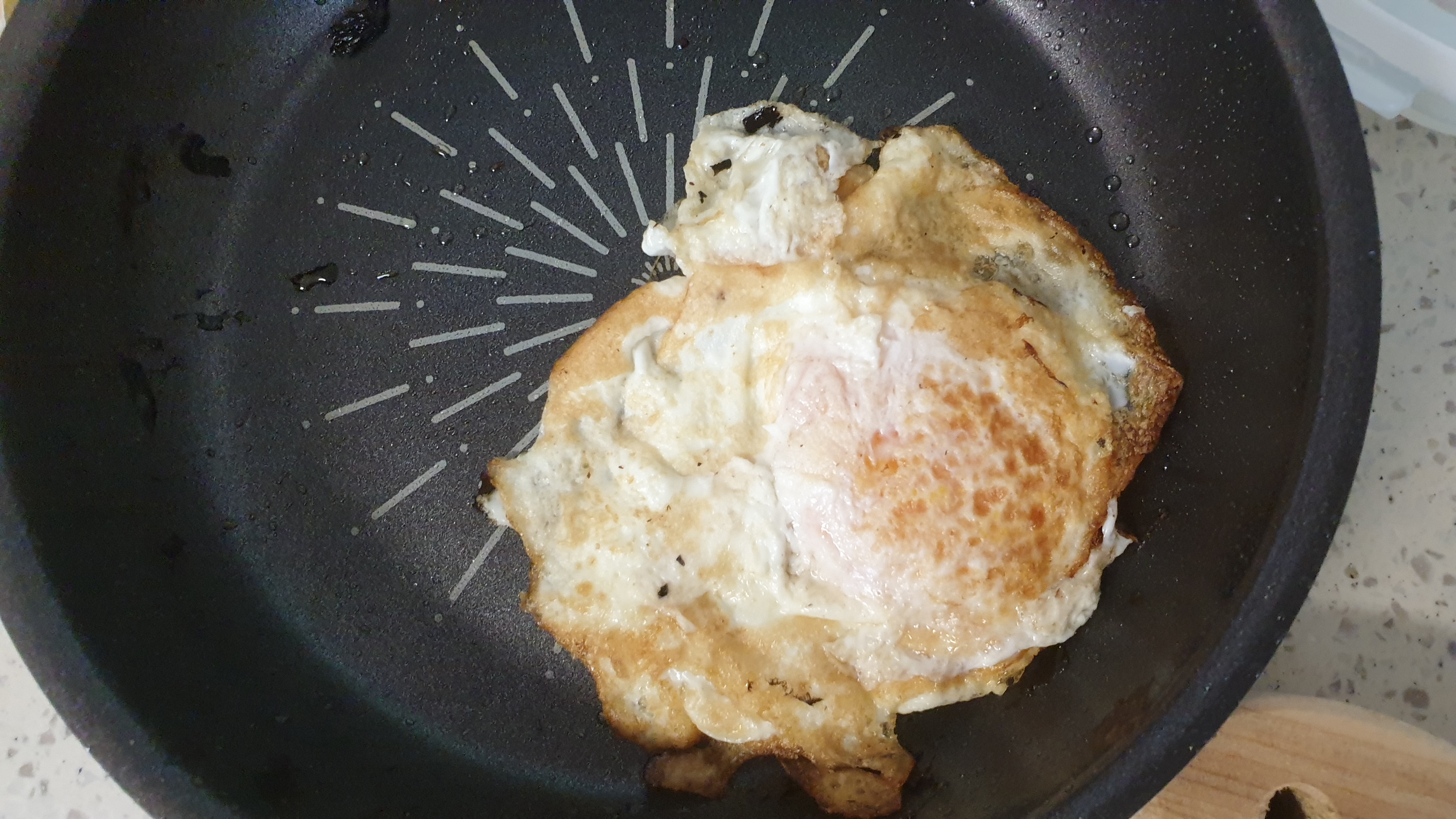 내부가 조금 더 잘보이게 기울이면 이렇게 된다. 계란이 매우 잘 되었다.
