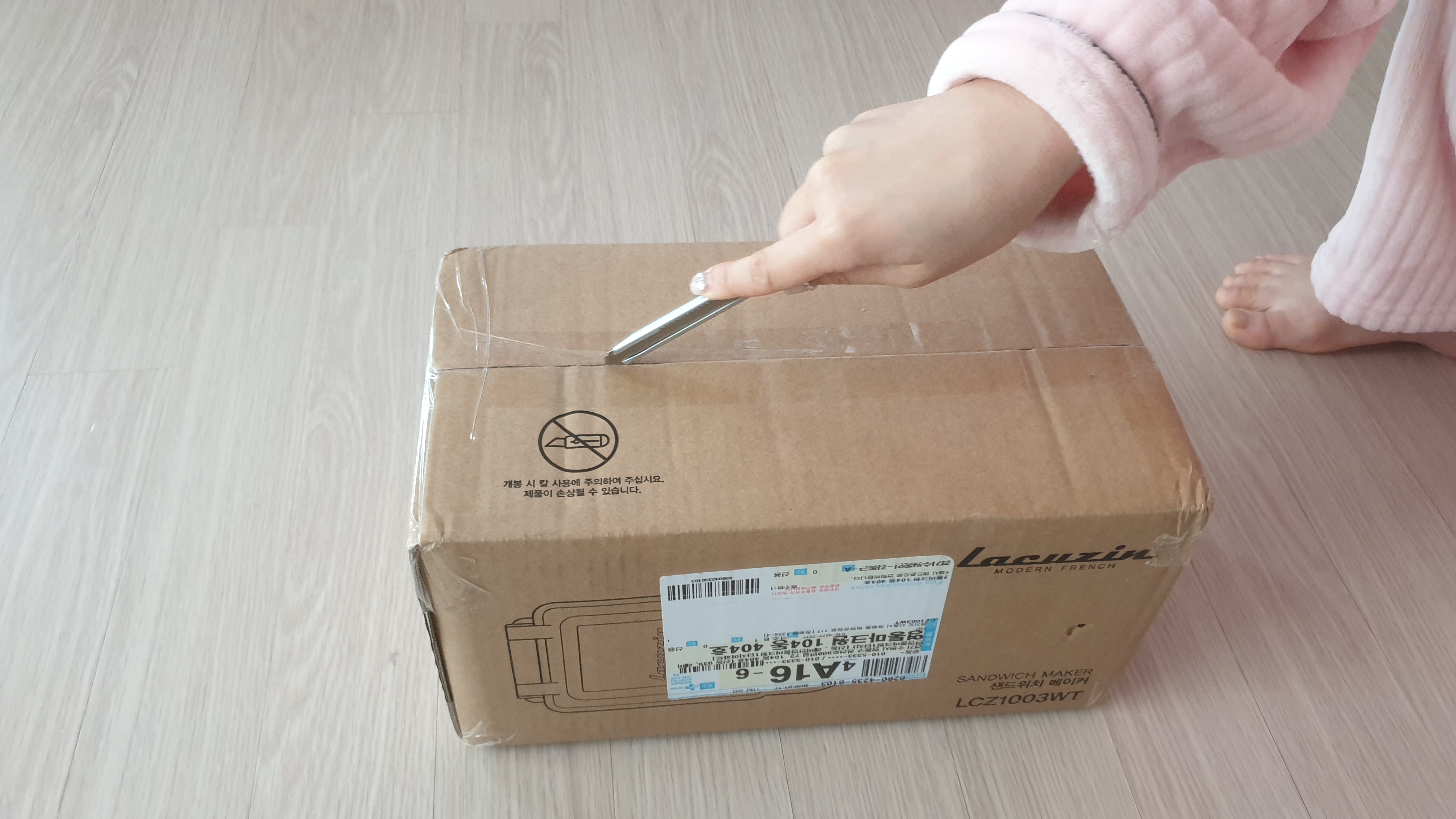 그렇게 겉 박스를 제거하자 하얀색 본품 박스가 나왔다. 이제야 어떻게 생긴 제품인지 감이 왔다. 아 이거 와플메이커구나.