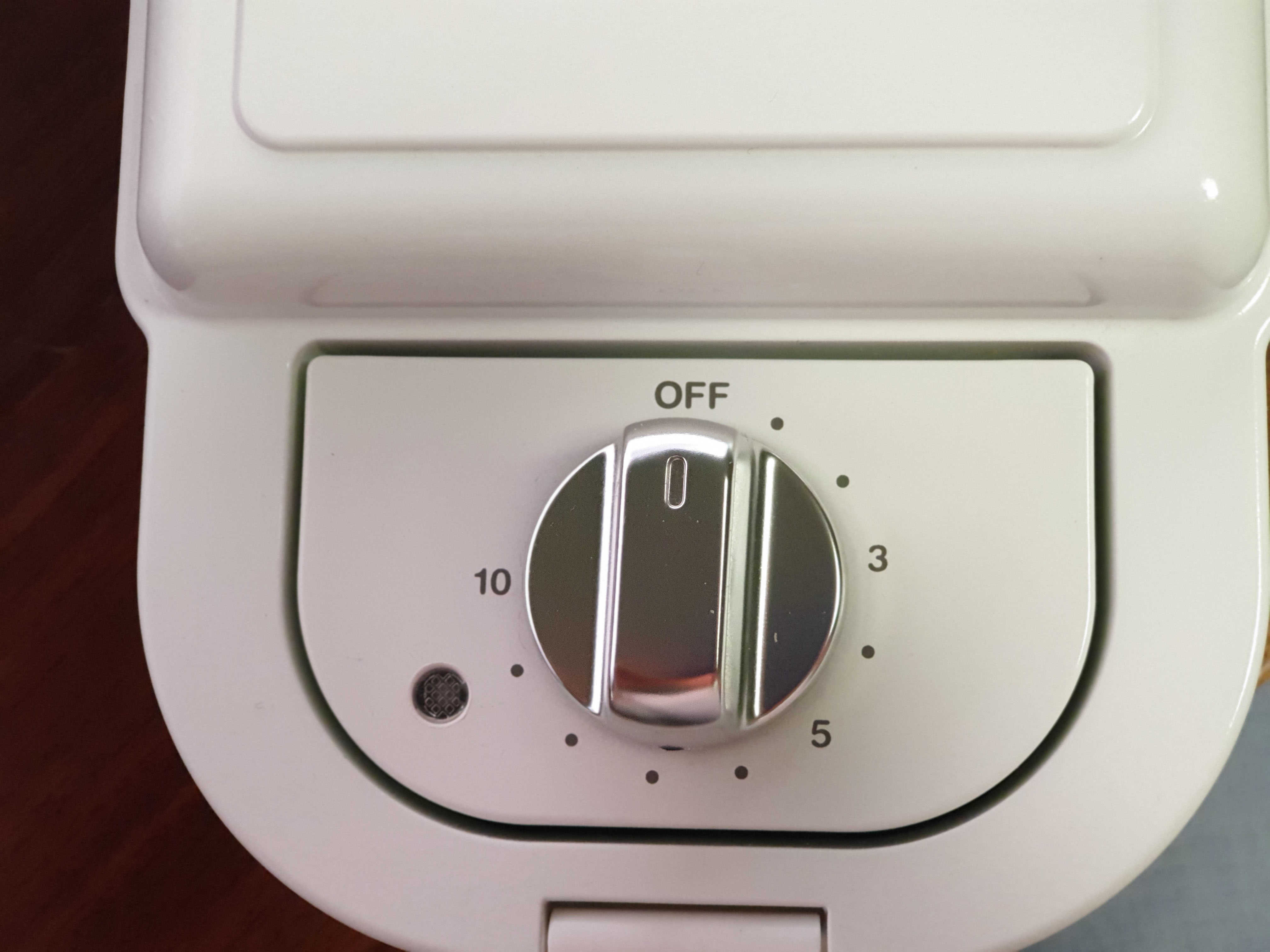하단에는 타이머가 있다. 그리고 7시방향에는 동작중을 보여주는 빨간색 램프가 있다. 점등되지 않았을 때는 까맣게 꺼져있다. 타이머는 0분부터 10분까지 아날로그 레버로 대충 설정할 수 있게 되어있다. 중요한건 요리사의 감이지 정확한 시간이 아니라는 것을 기억해두자.