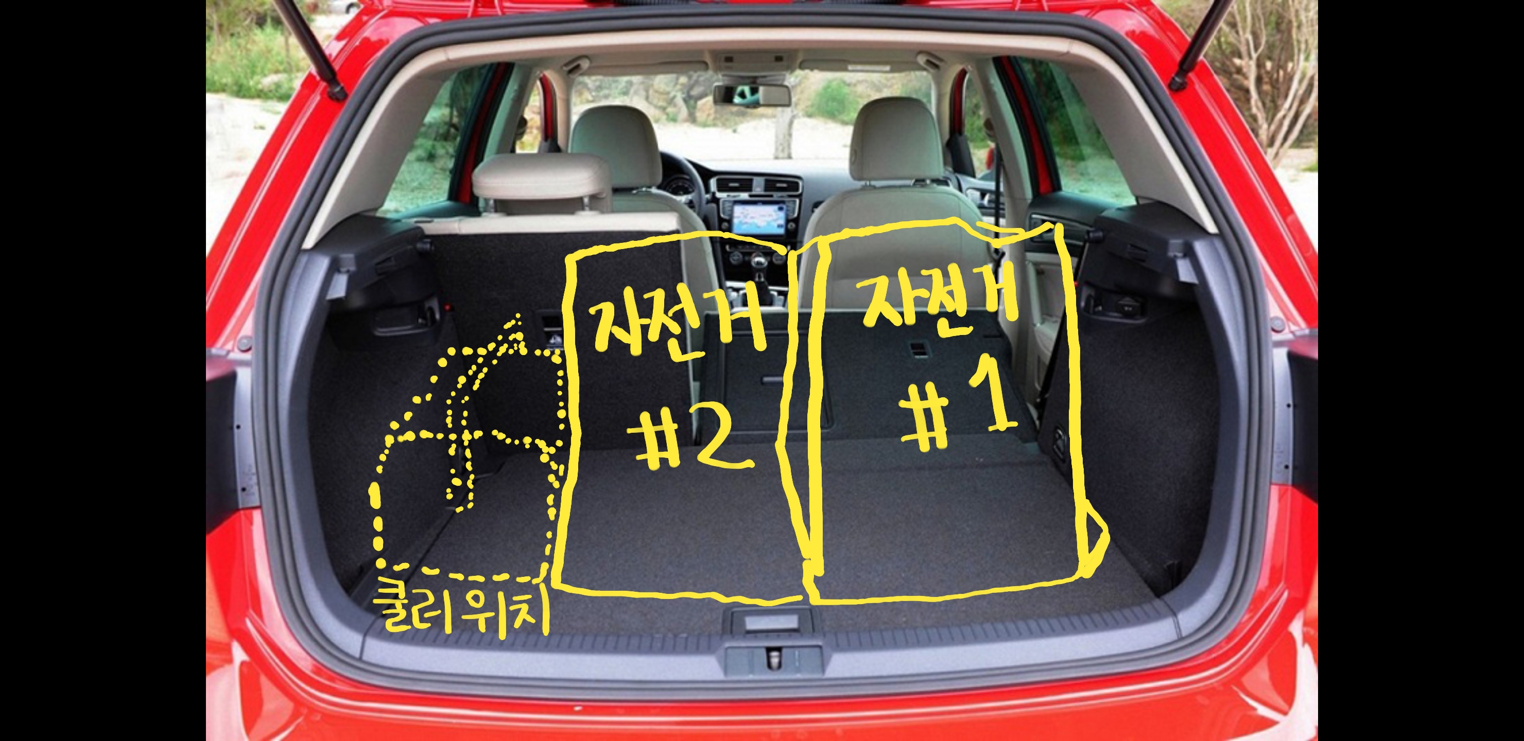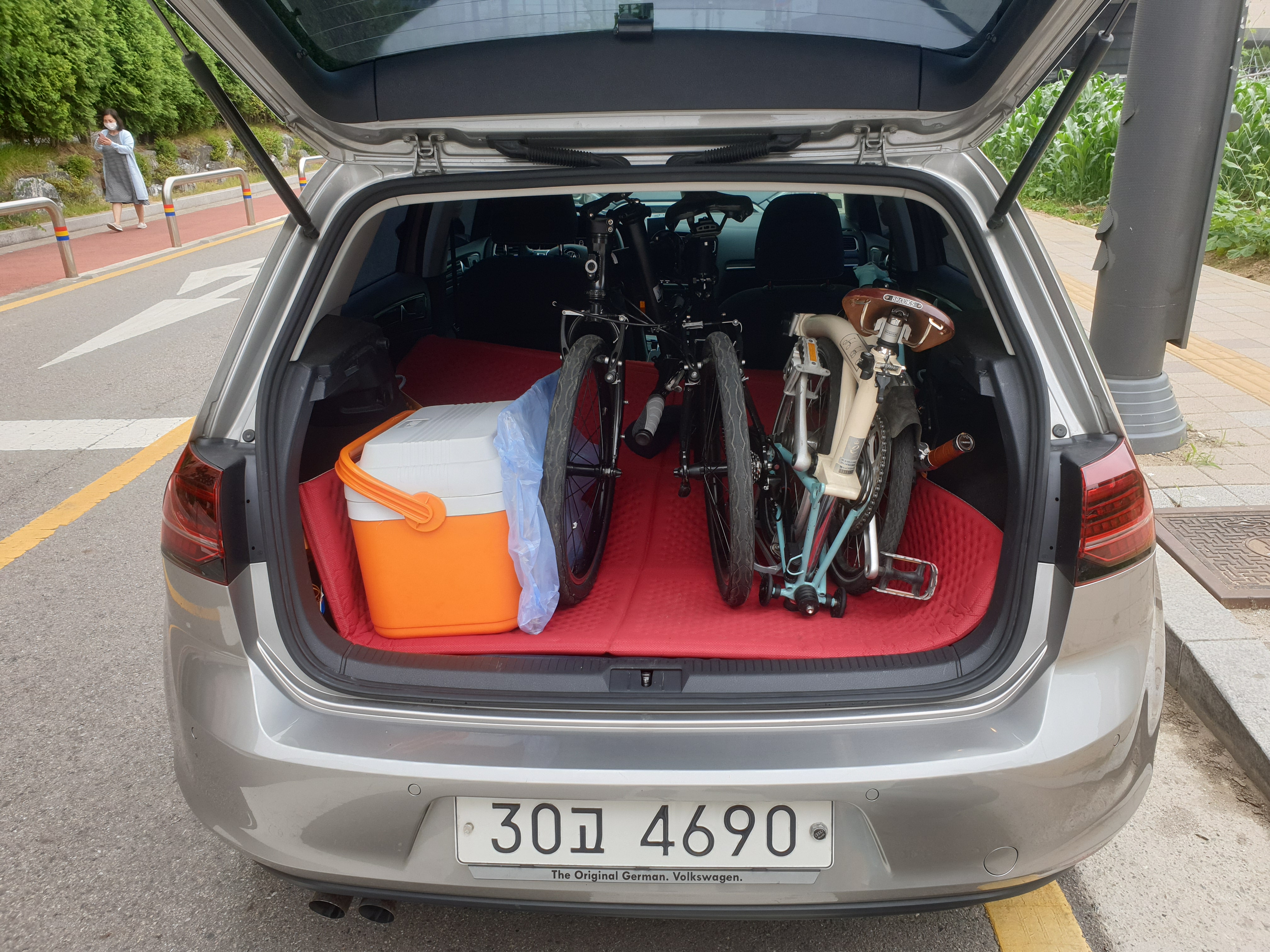 골프 7세대 트렁크에 자전거 2대 + 쿨러를 넣고 싶었다.