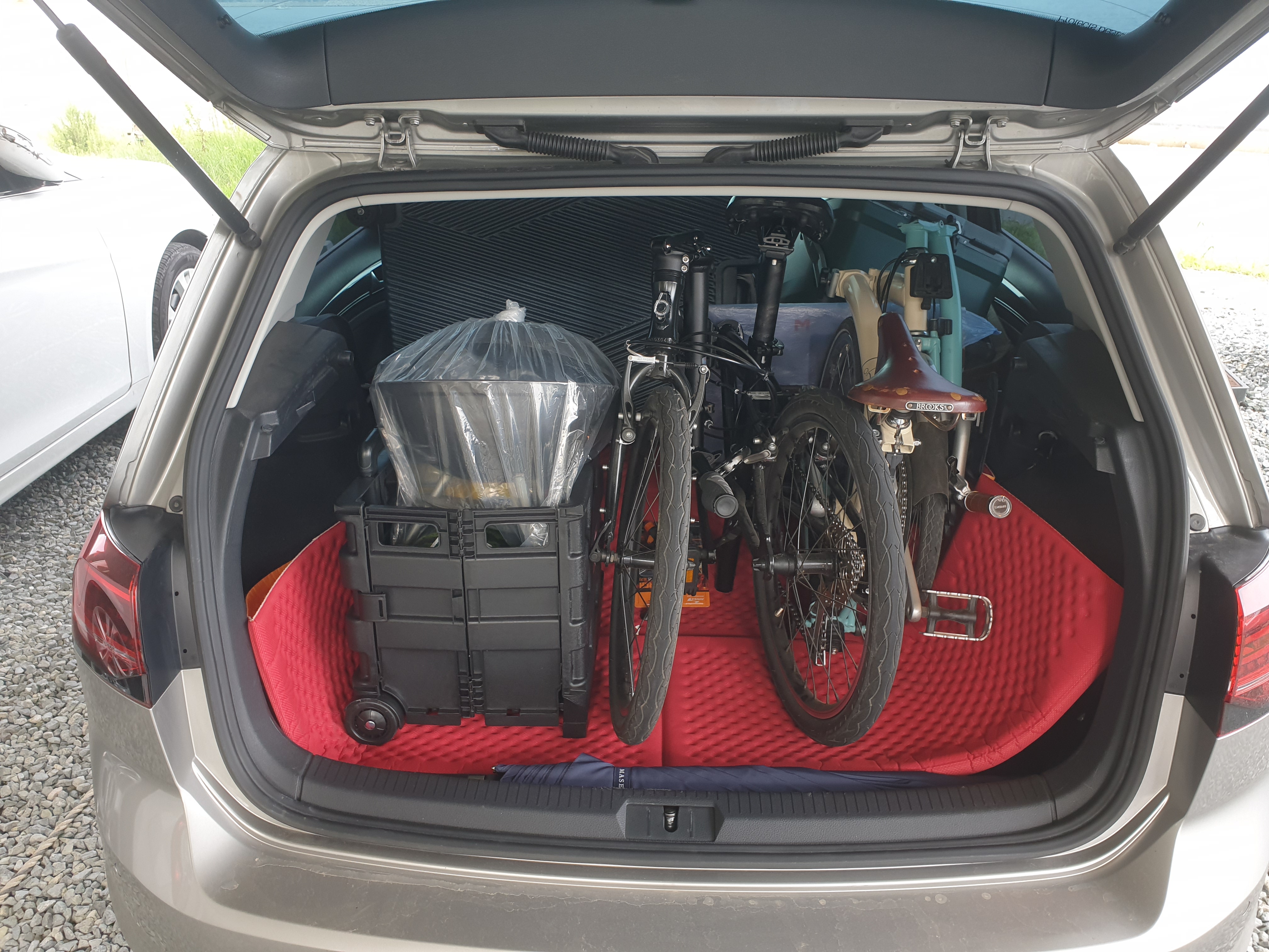 브롬톤 두대였으면 얼마나 좋아? 내 브롬톤 1대와 호두의 티티카카 1대를 싣고 그 좌측에 놓은 모습이다.