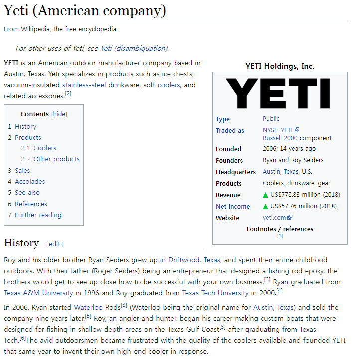 이글루보다 훨씬 긴 역사를 자랑한다. 미국에서는 알아주는 캠핑용품, 그중에서도 보틀류들에 집중하는 브랜드이다.