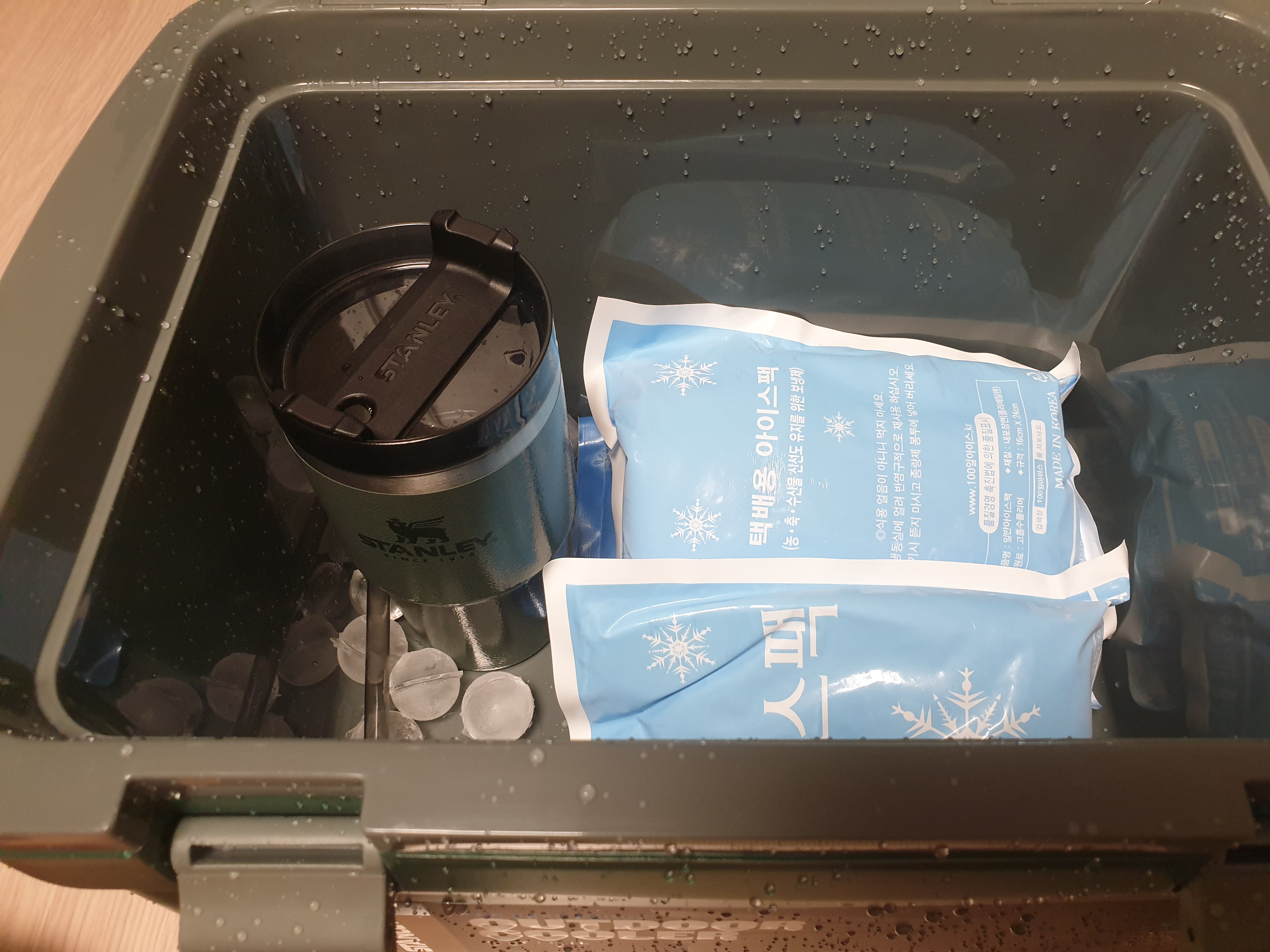 화장실에 가져가서 씻고, 같은 스탠리 친구인 텀블러와 택배용 아이스팩을 넣어보았다.