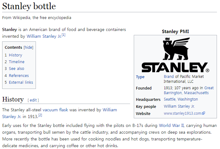 오늘의 주인공이다. 한국에서는 스타벅스와 텀블러 콜라보레이션제품을 출시하면서 최근 인지도를 많이 얻었다.