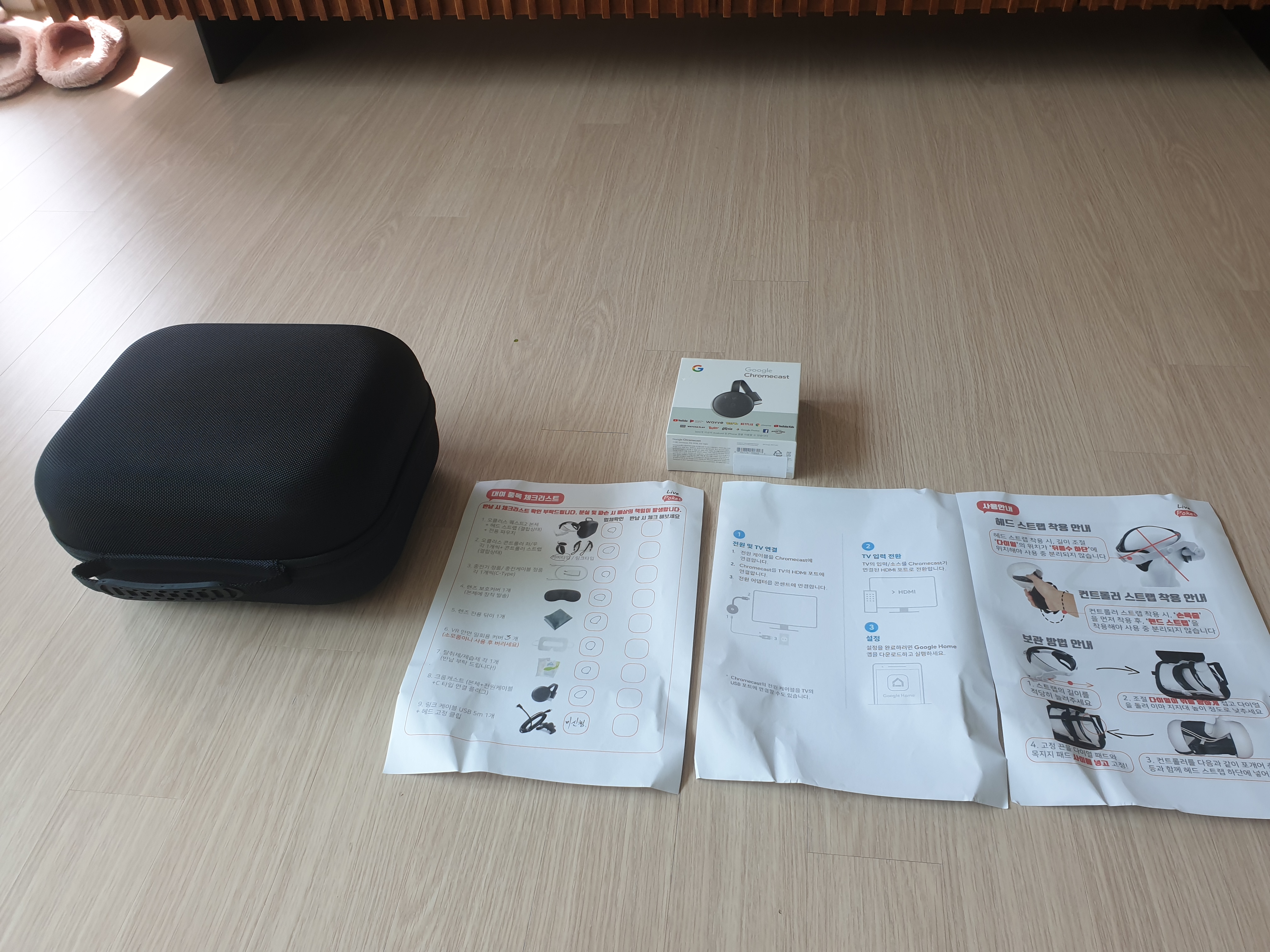 오큘러스 본품 박스와 추가로 신청한 크롬캐스트. 안내문 및 접을때의 안내문.