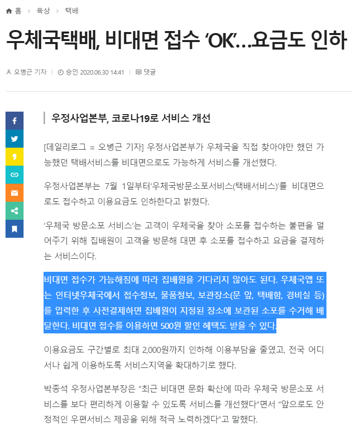 오오 직접 우체국에 갈 필요가 없었던 것이다.
