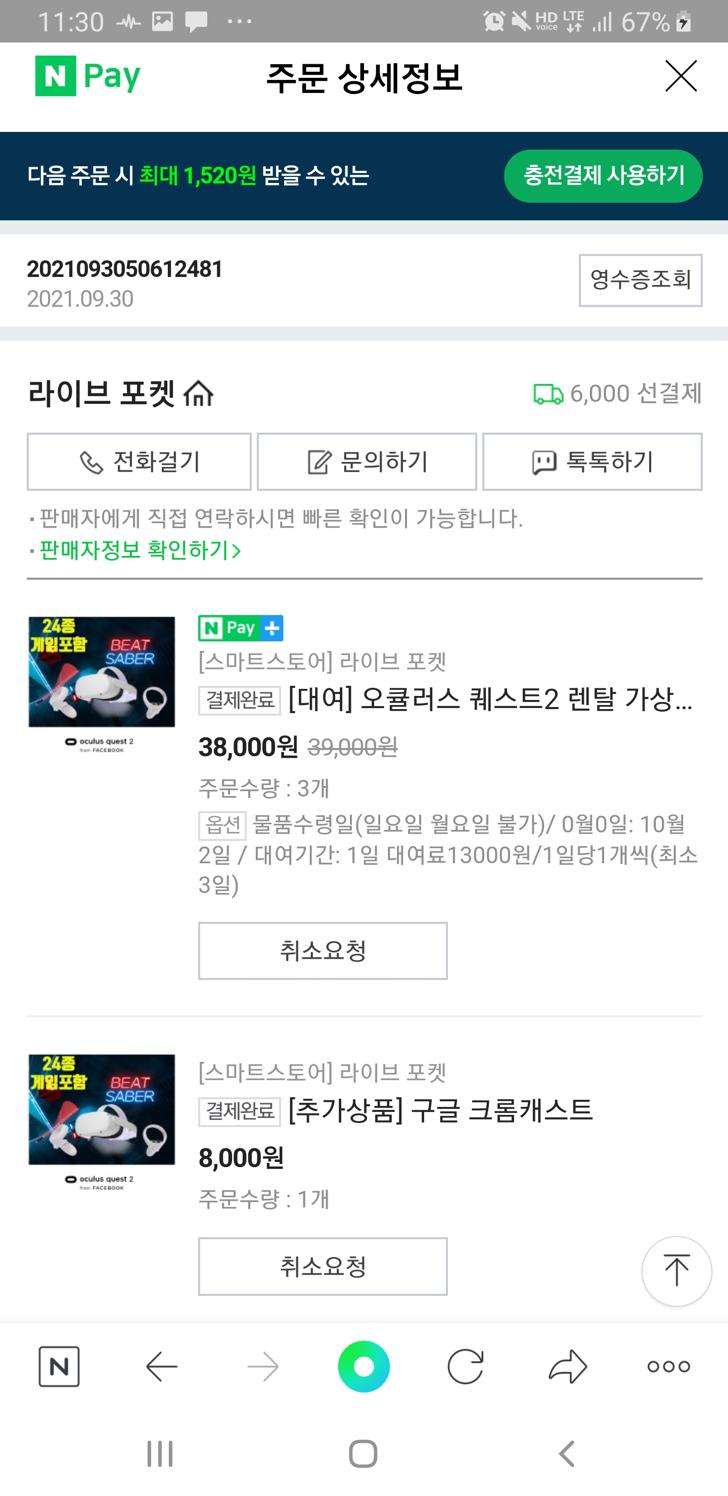 오큘러스 대여도 마찬가지 방식으로 진행했다.