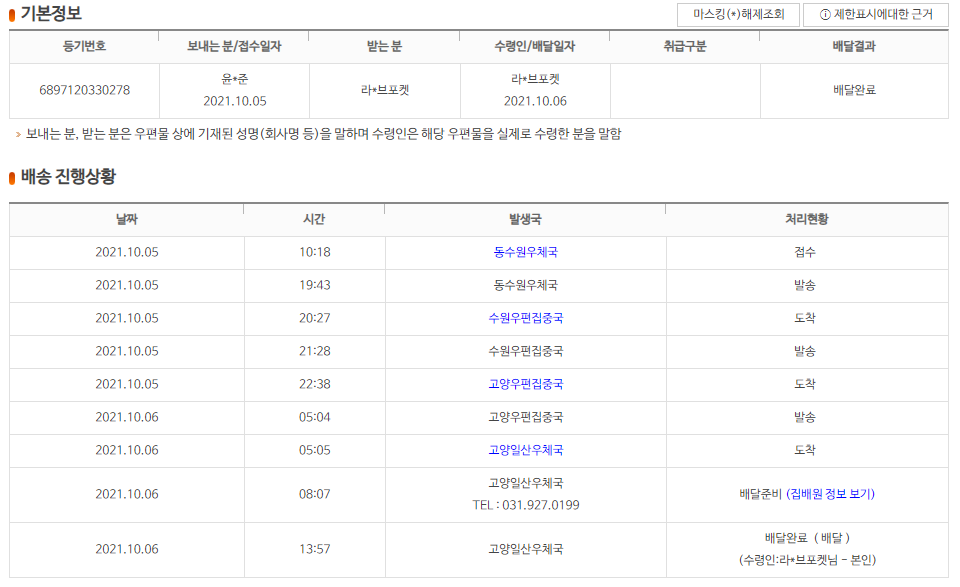 판매자분은 우체국택배를 사용하고 계신 것 같다.