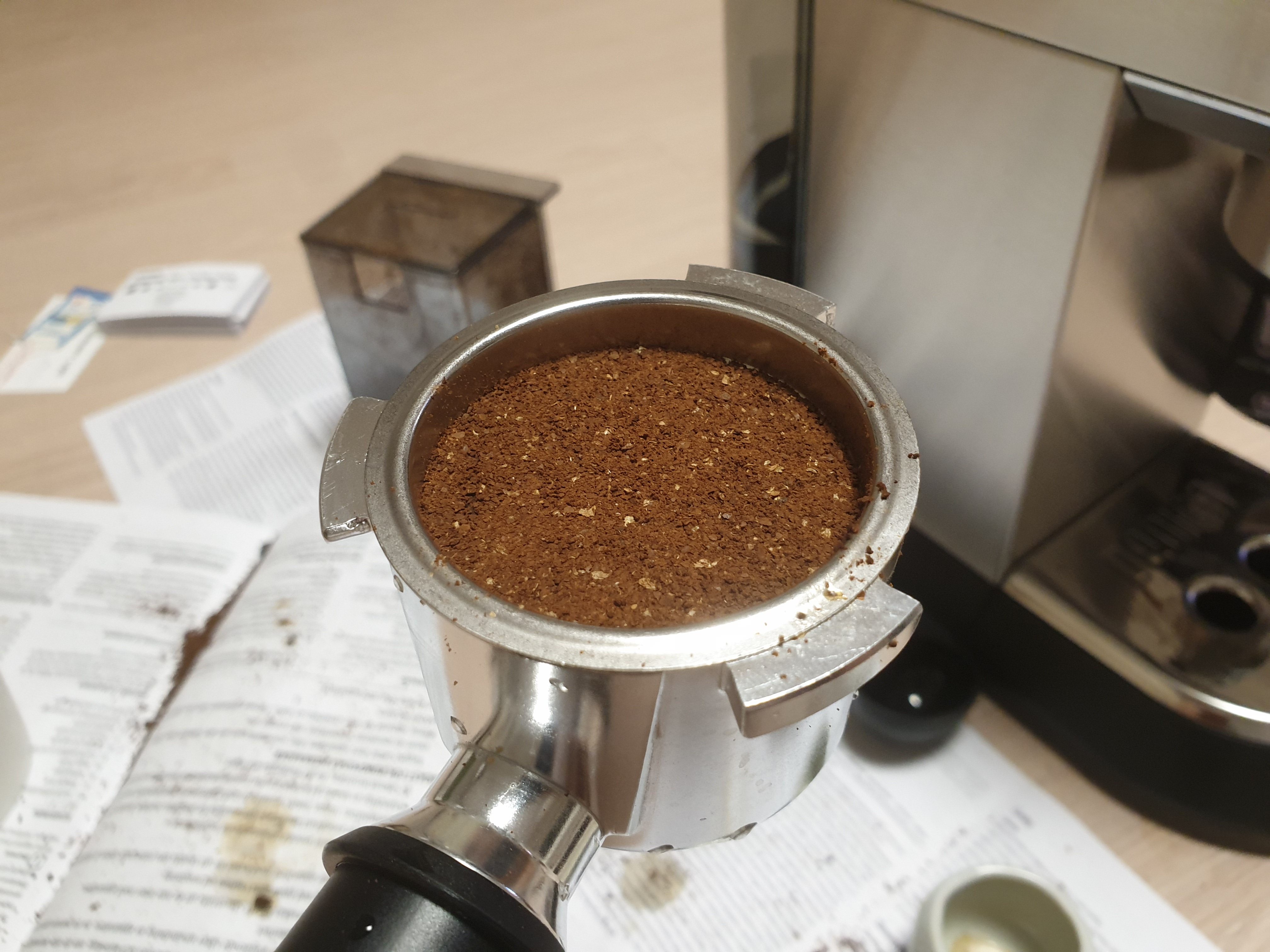 이렇게 입자가 크다. 사진 위에 보면 구입시 들어있던 플라스틱 저렴이 탬퍼로 꾹꾹 눌러보았는데, 눌리지도 않고 입자는 두껍고 이때는 이게 어떤 문제인지 몰랐다. 정말 몰랐다.