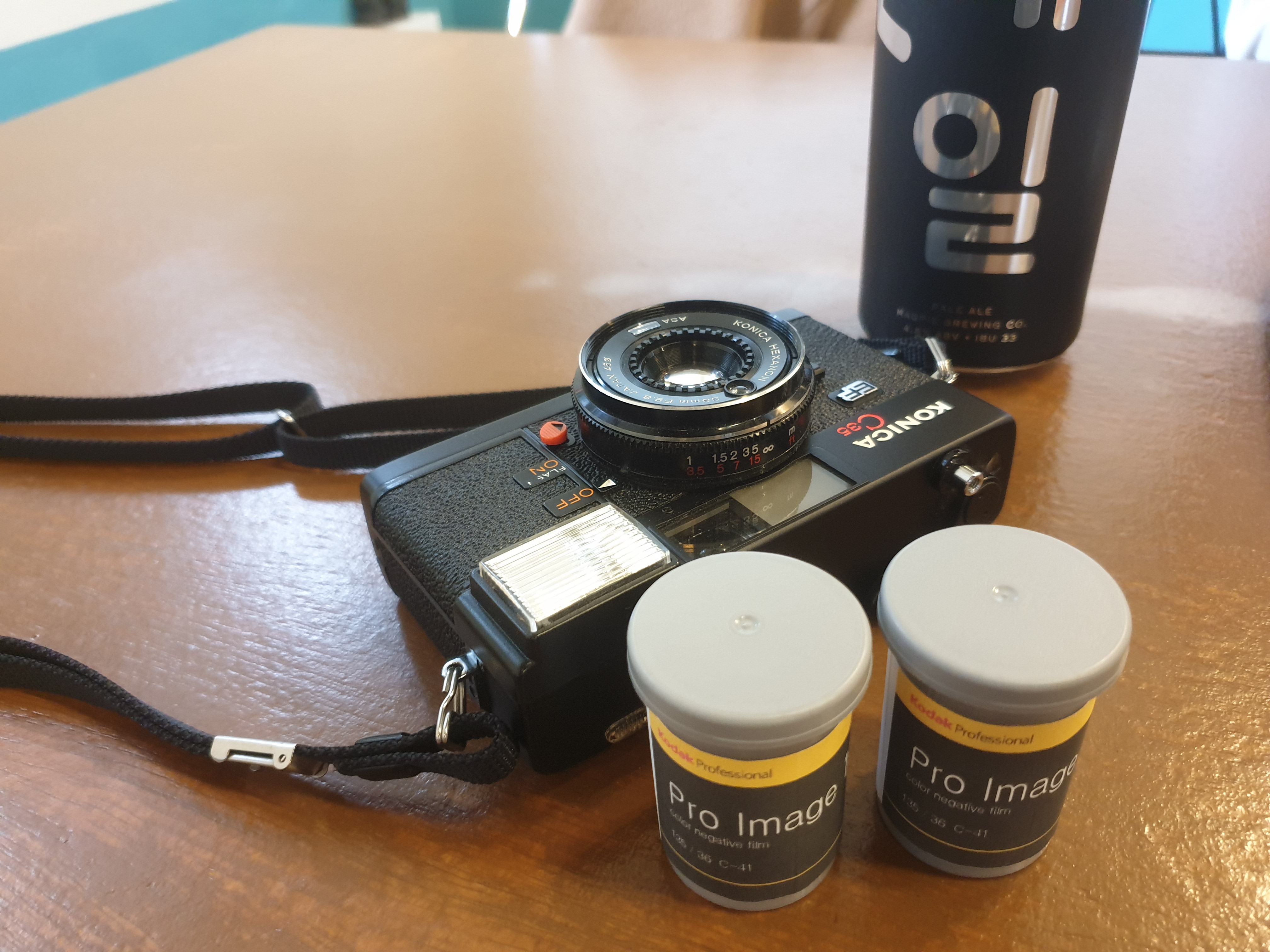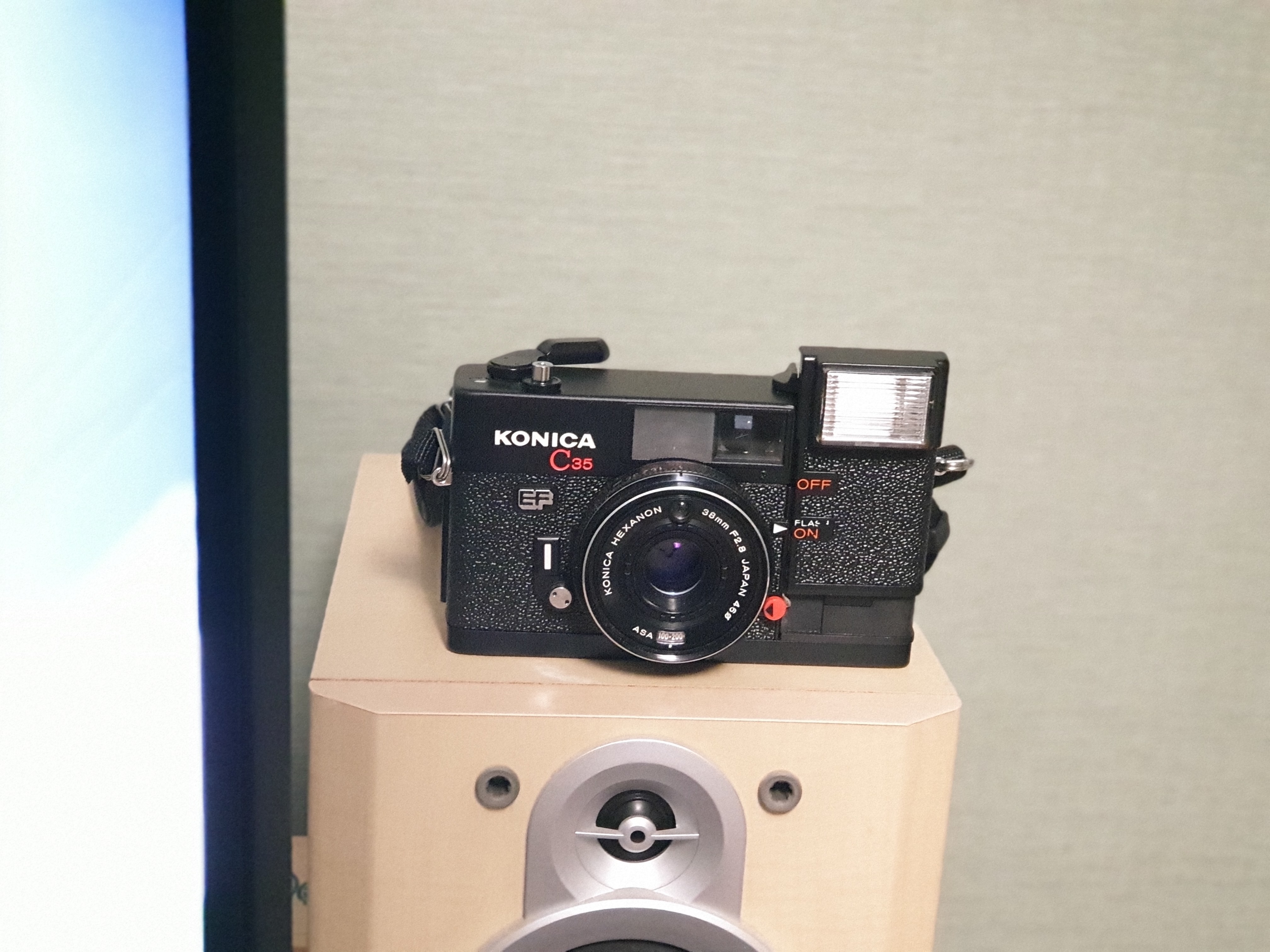KONICA C35 EF. 칭찬받는 헥사논 렌즈 38mm F2.8값. 감도세팅가능, 조리개+셔터스피드 조절 통합형.