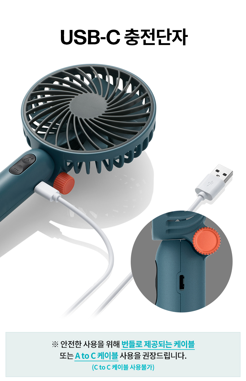 USB C타입 충전을 지원한다. 이제 대세가 되어버린 C타입 충전으로 하나의 충전선으로 스마트폰도 충전하고 선풍기도 충전할 수 있다는 것은 비슷비슷한 제품들 가운데서 가장 큰 장점이 아닐까 생각한다.