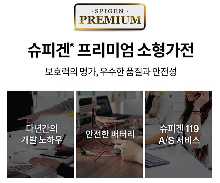 다년간의 개발 노하우, 슈피겐 A/S 서비스라고 하는데 과연 다년간 소형가전을 제조해왔는가 의문이 든다.