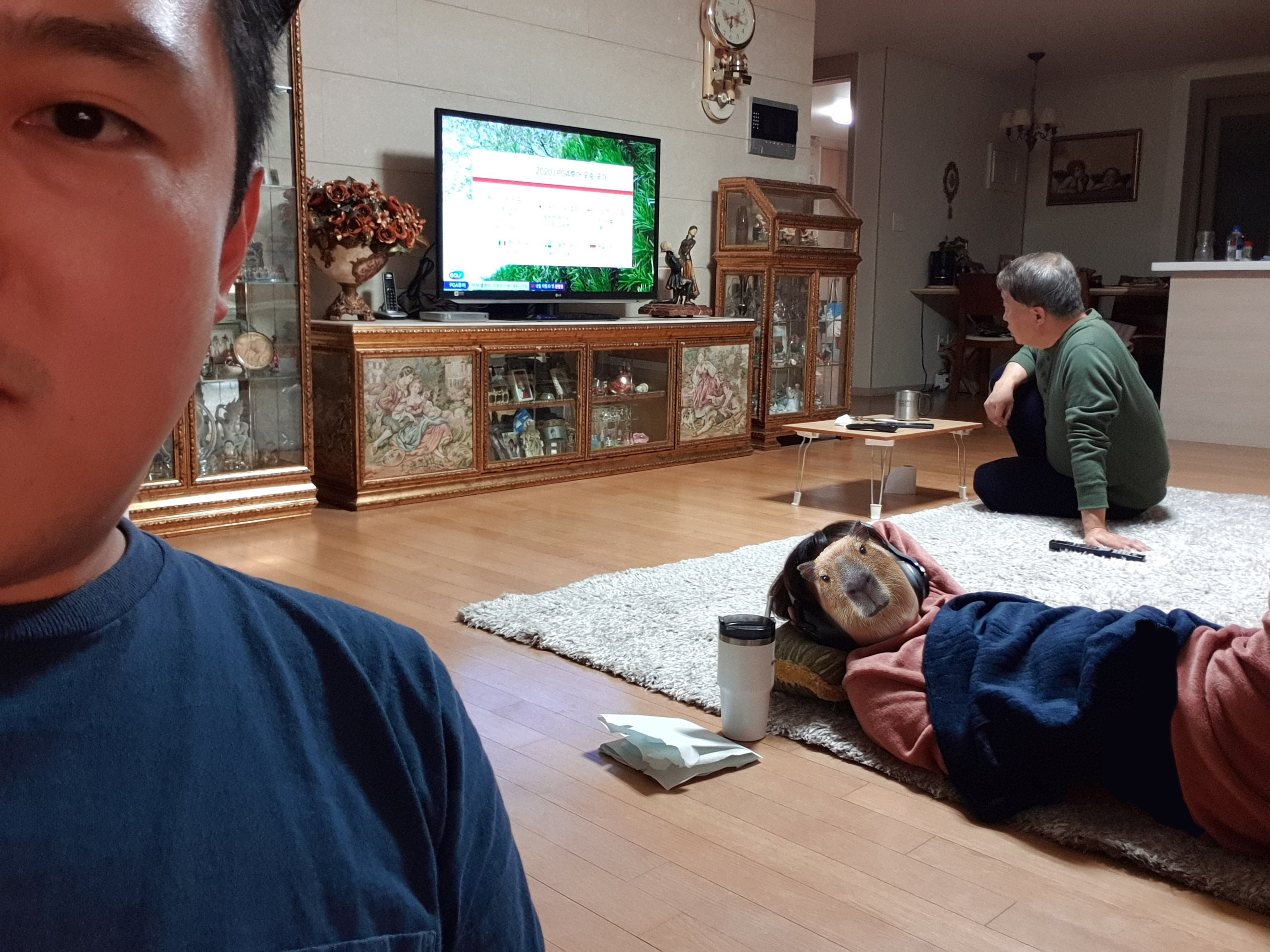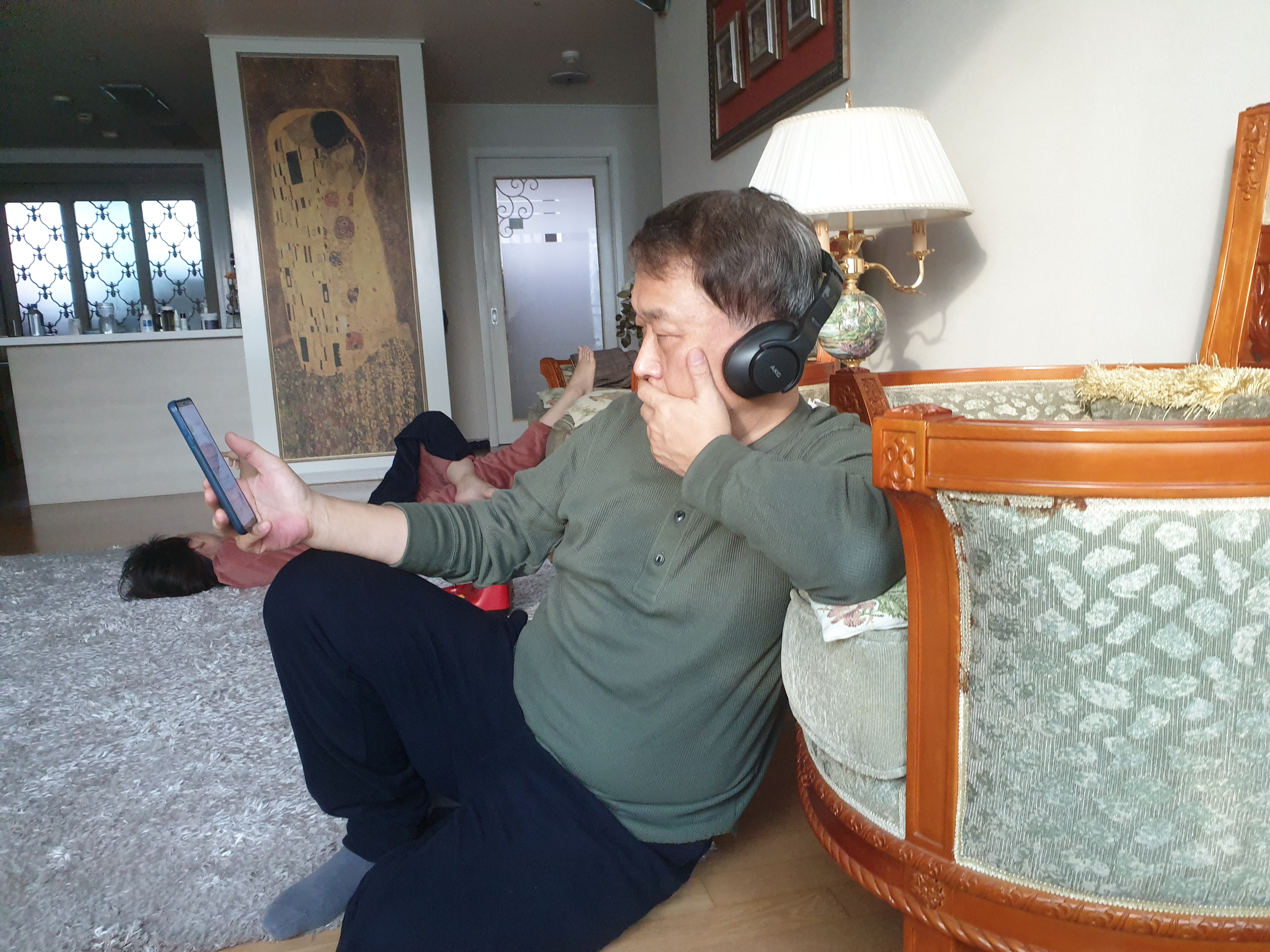 스마트폰의 블루투스에 연결해서 음악을 듣는 장인어른.