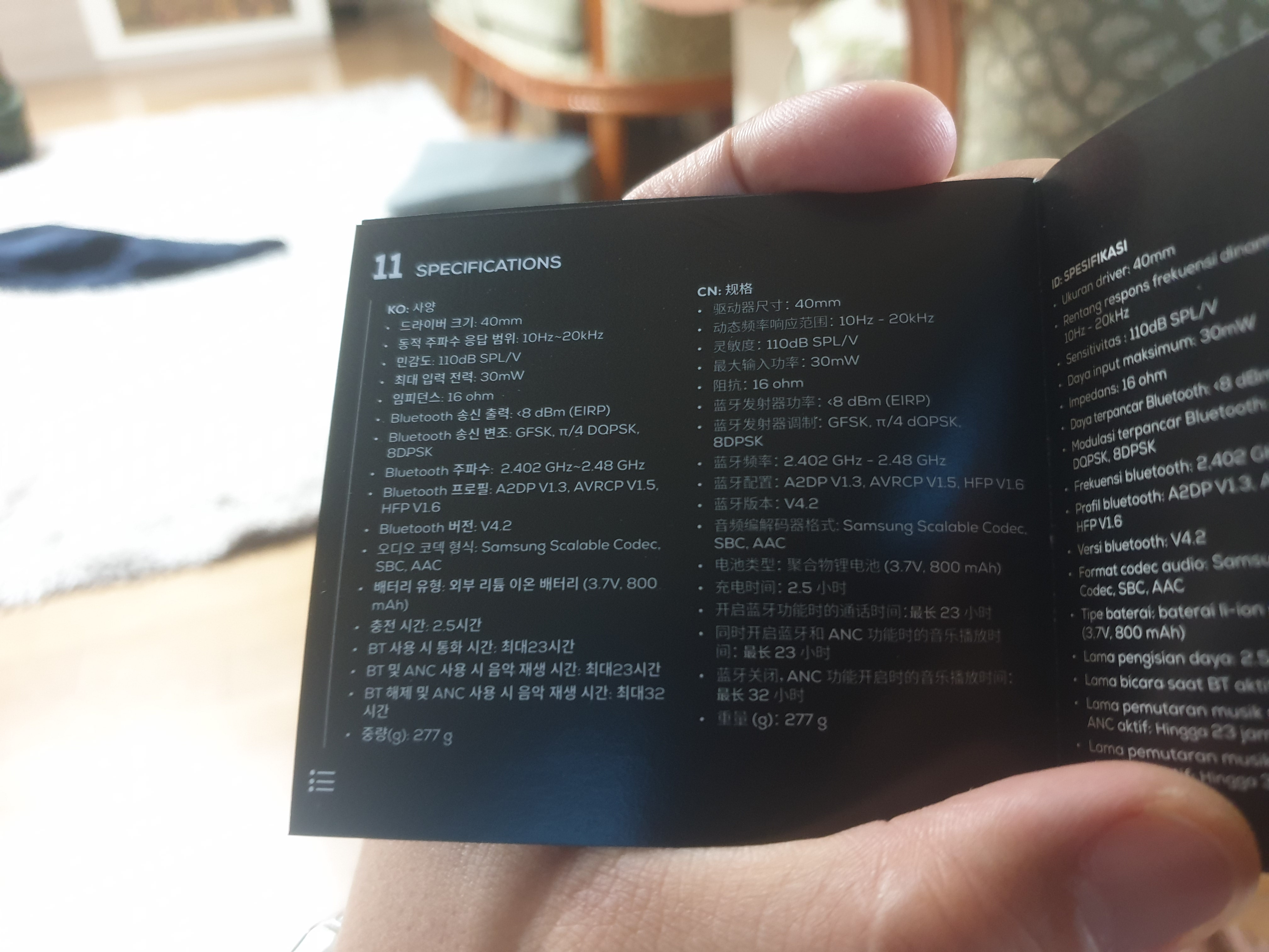 블루투스 사용시 23시간, ANC사용시 최대 32시간