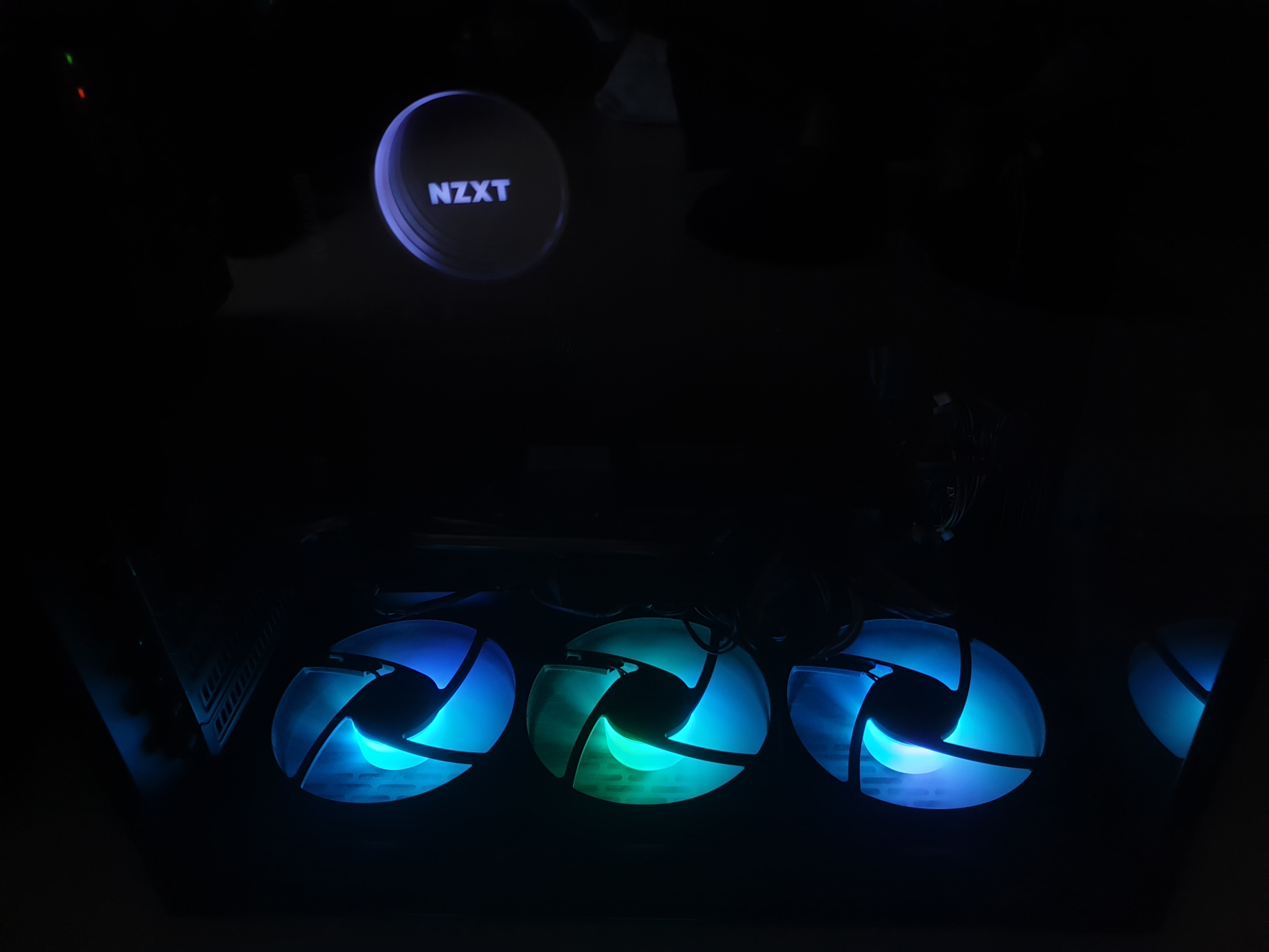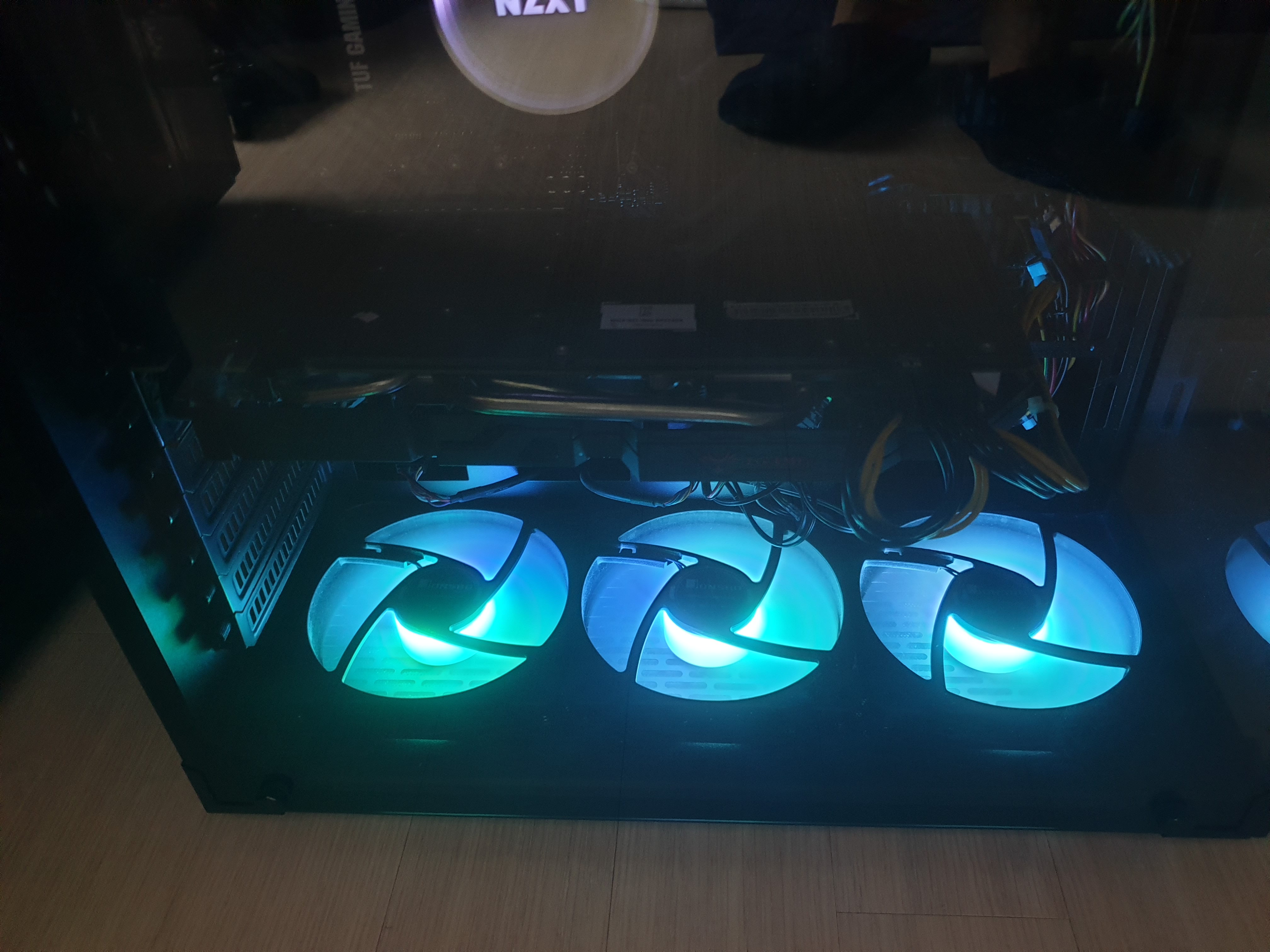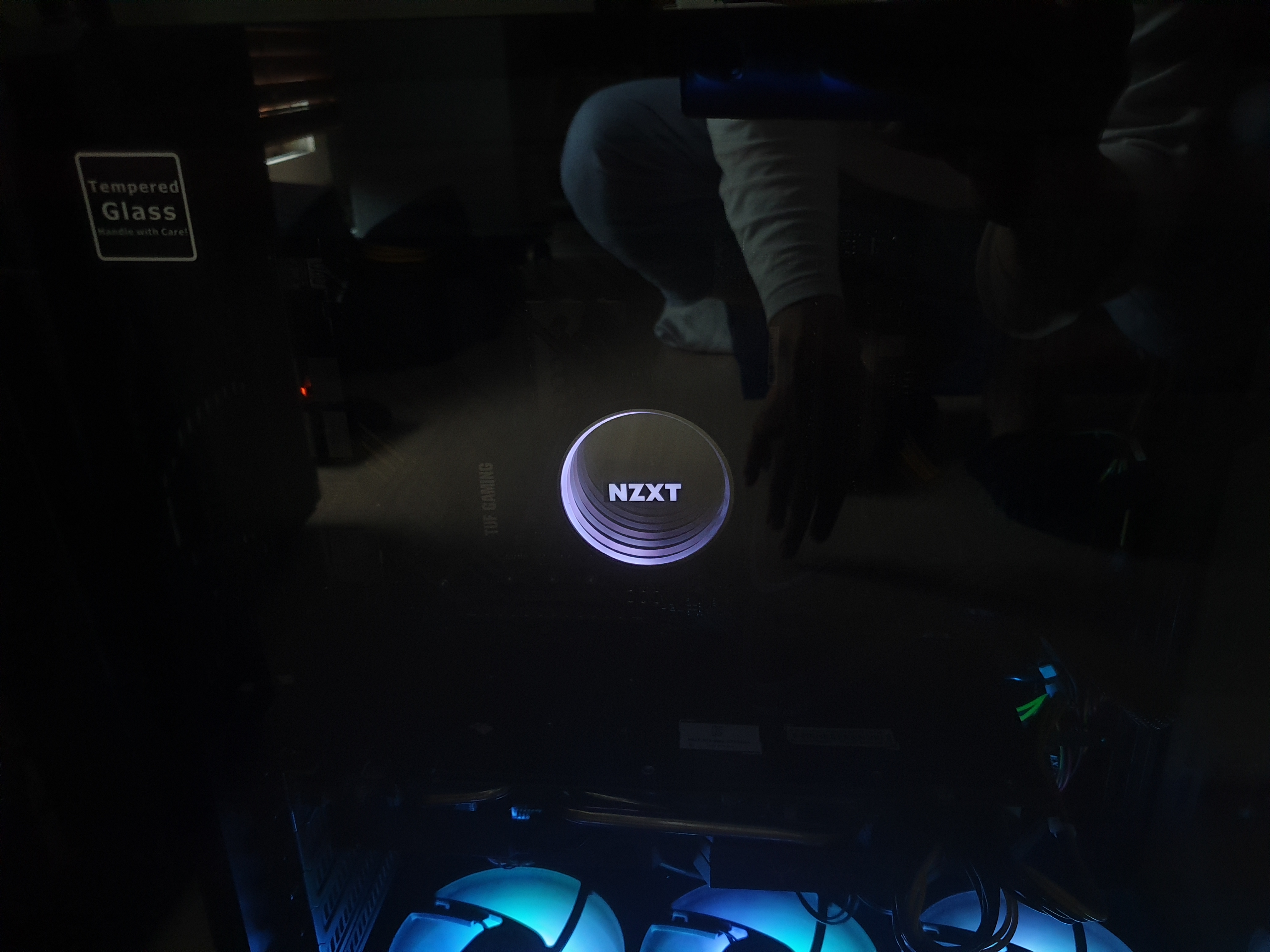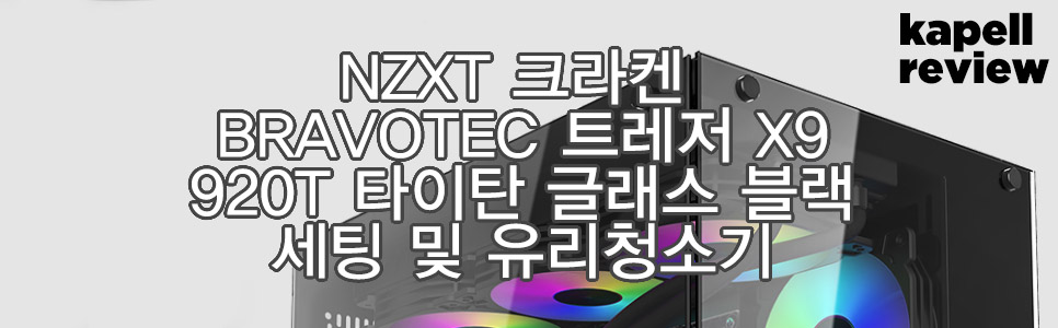 그렇게 전면 유리를 닦고 장착했을때 NZXT 크라켄의 영롱한 모습이 눈에 들어온다. 빛난다.