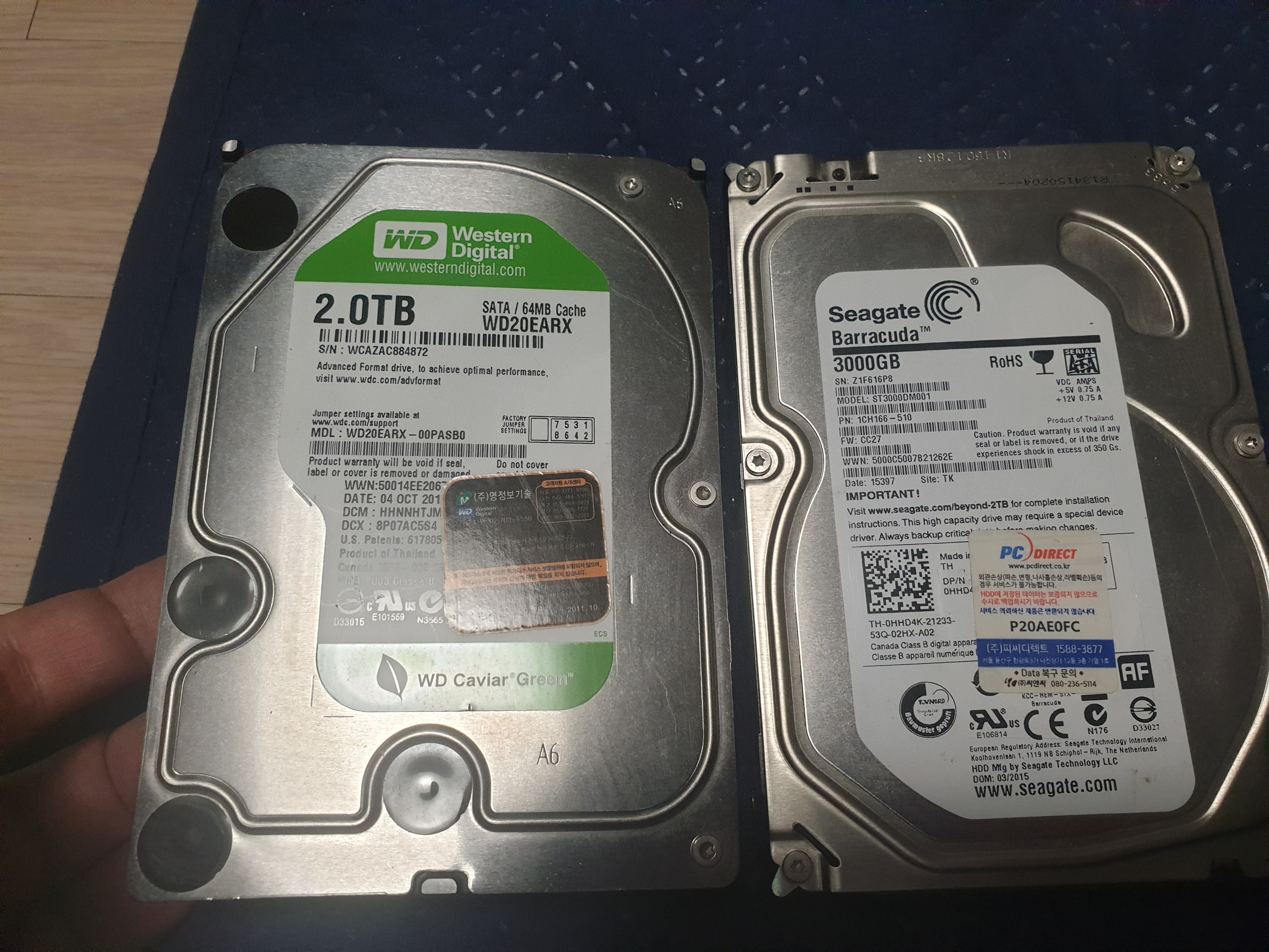 하드디스크. 2TB를 먼저 샀다가 부족함에 3TB를 추가로 그립했다. WD 웬디 그린을 구입하다니 당시에는 구입자금의 압박에 구입했지만 두고두고 이렇게 후회가 될줄이야.