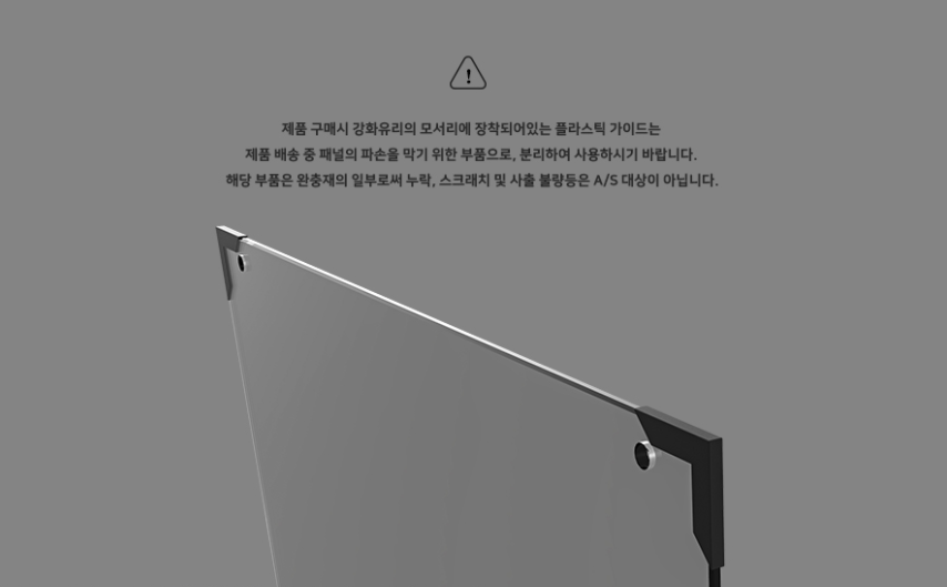 강화유리의 네 코너에는 플라스틱으로 가이드를 장착할 수 있다. 이건 선택의 영역인데 내 경우는 나쁘지 않아서 장착하고 있다. 다음은 플라스틱 가이드에 대한 제품광고 이미지에서의 설명이다.