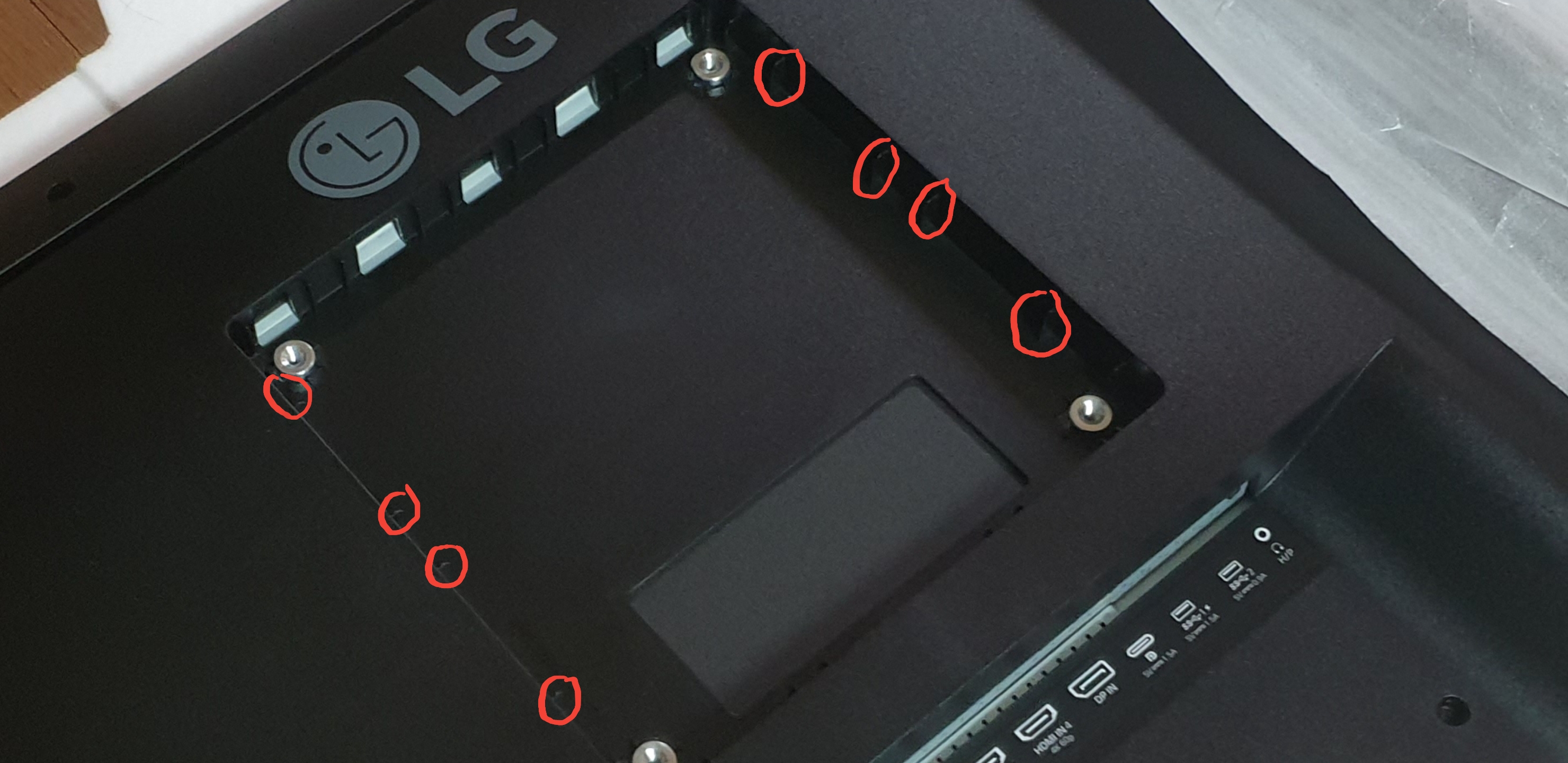 진짜 여러모로 까다로운 모니터다. 그래서 정말 저렇게 마진없이 꼭!!!!!!!! 맞는 마운트를 사용해야한다.