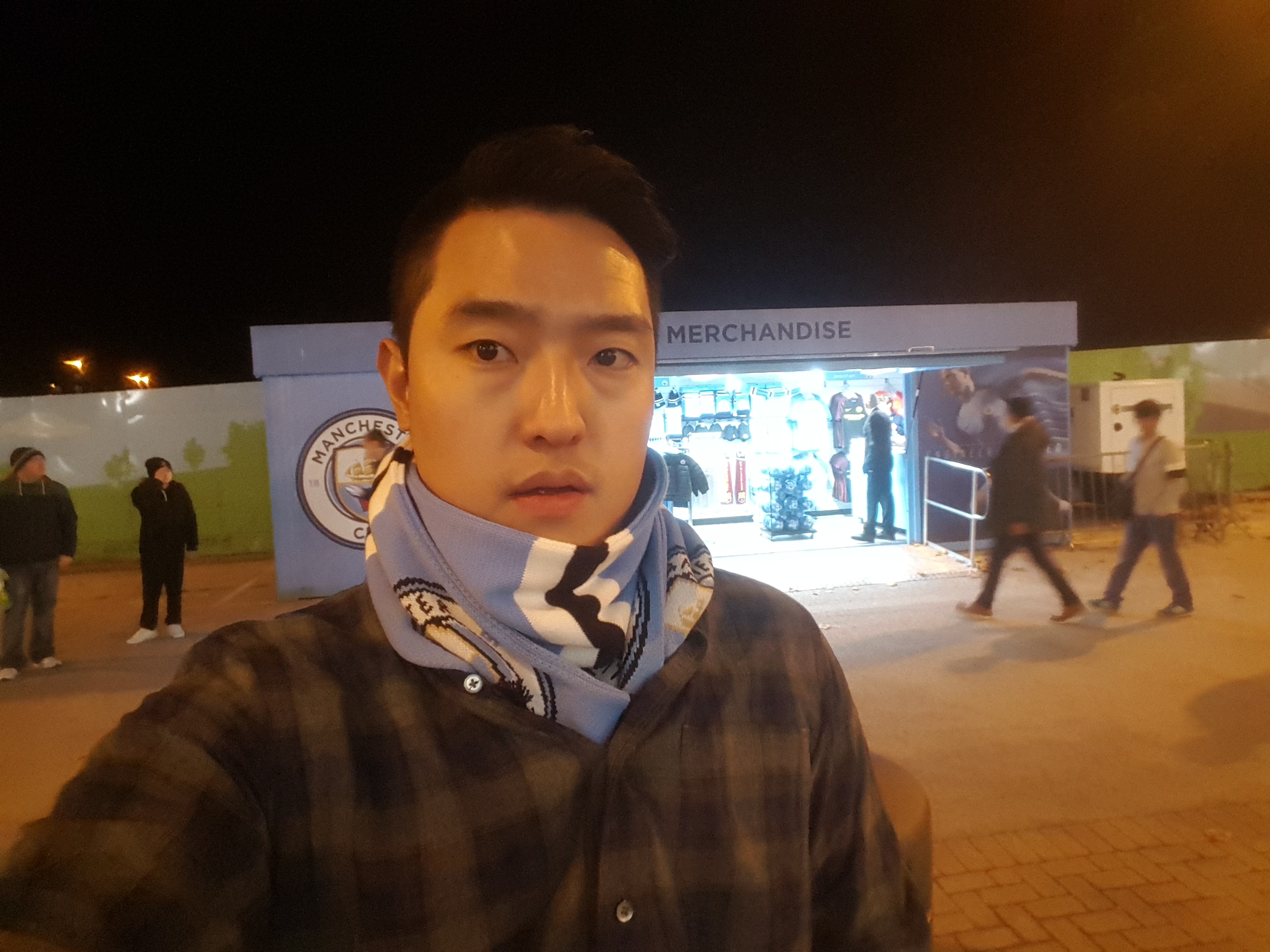 이번엔 정식 메가스토어가 아니라 경기가 열리는 날만 열리는 팝업 스토어에서 맨시티 목도리를 샀다.