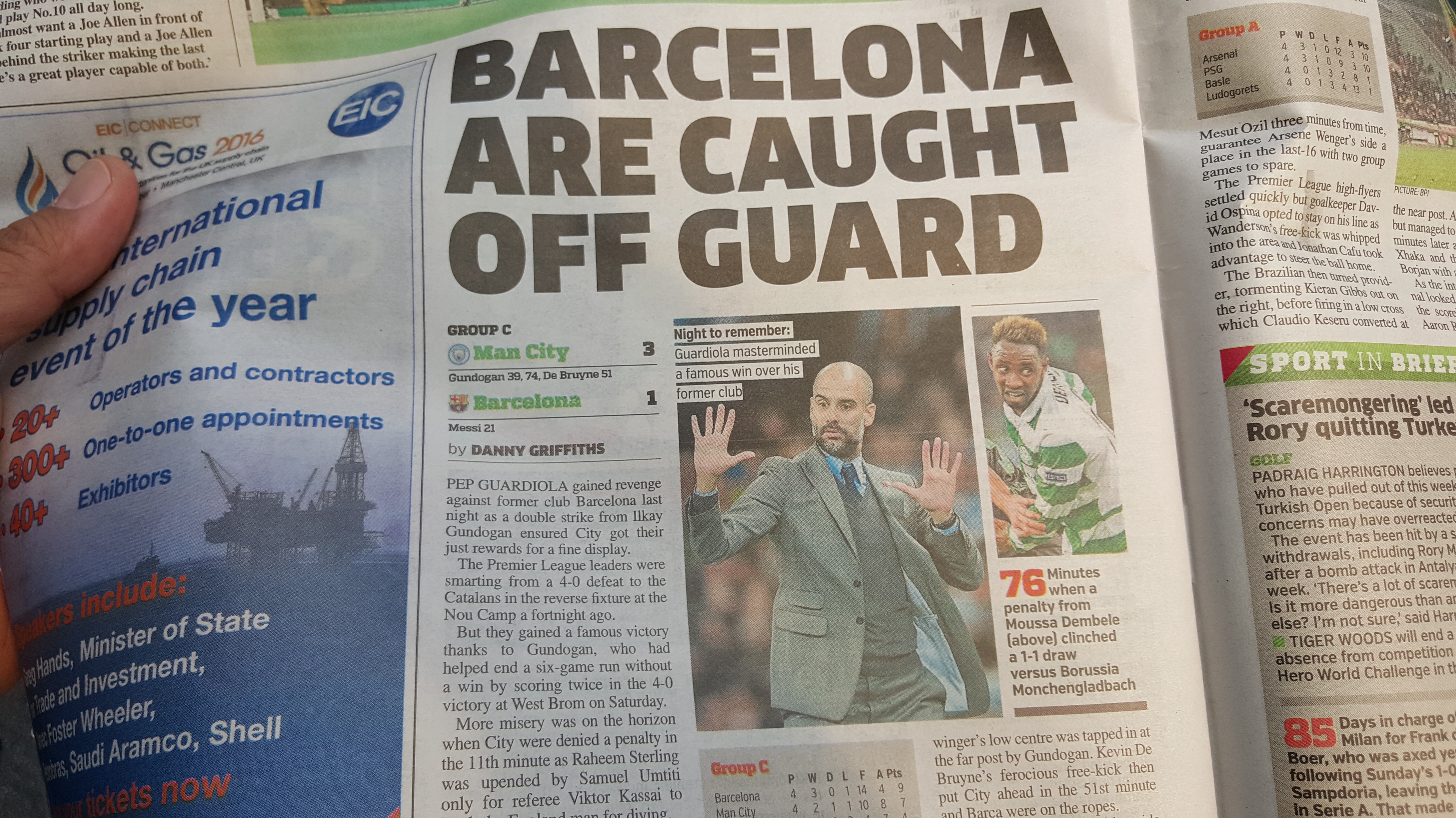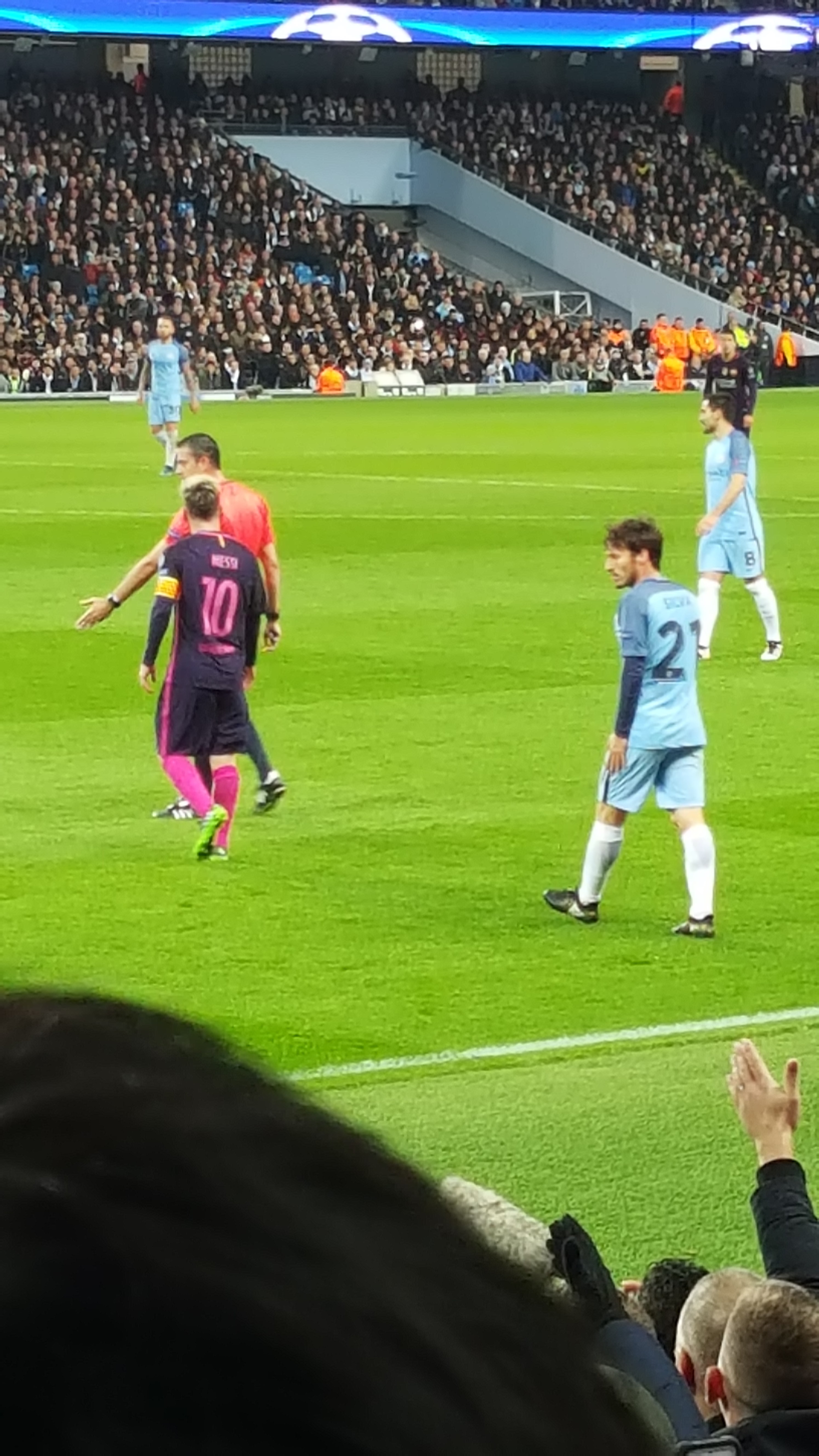 직관한 경기에서 맨시티가 기적적으로 바르셀로나에게 승리해서 기분이 너무나 좋았다.