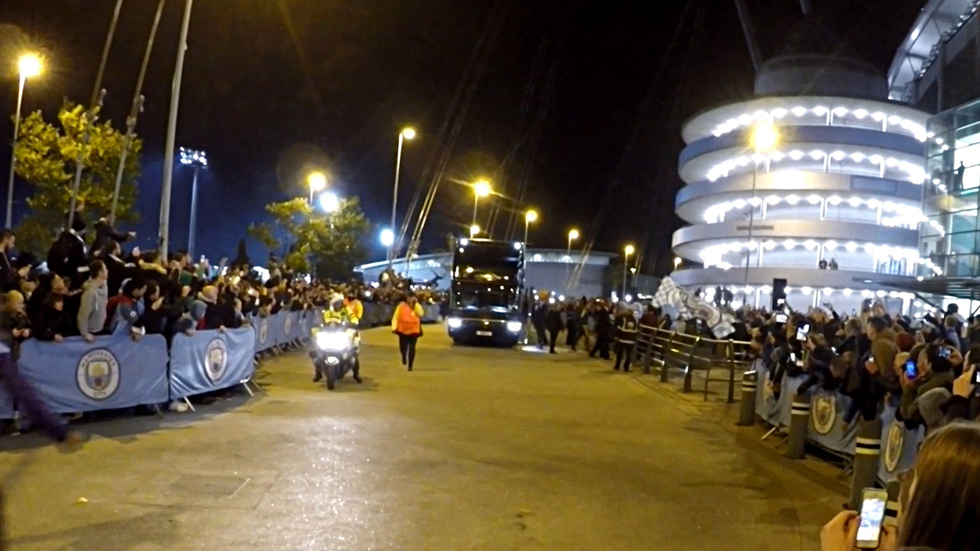 경기 시작전 바로 에티하드로 들어가지 않았다. 맨시티 선수버스가 경기장안으로 들어가는걸 구경한다.