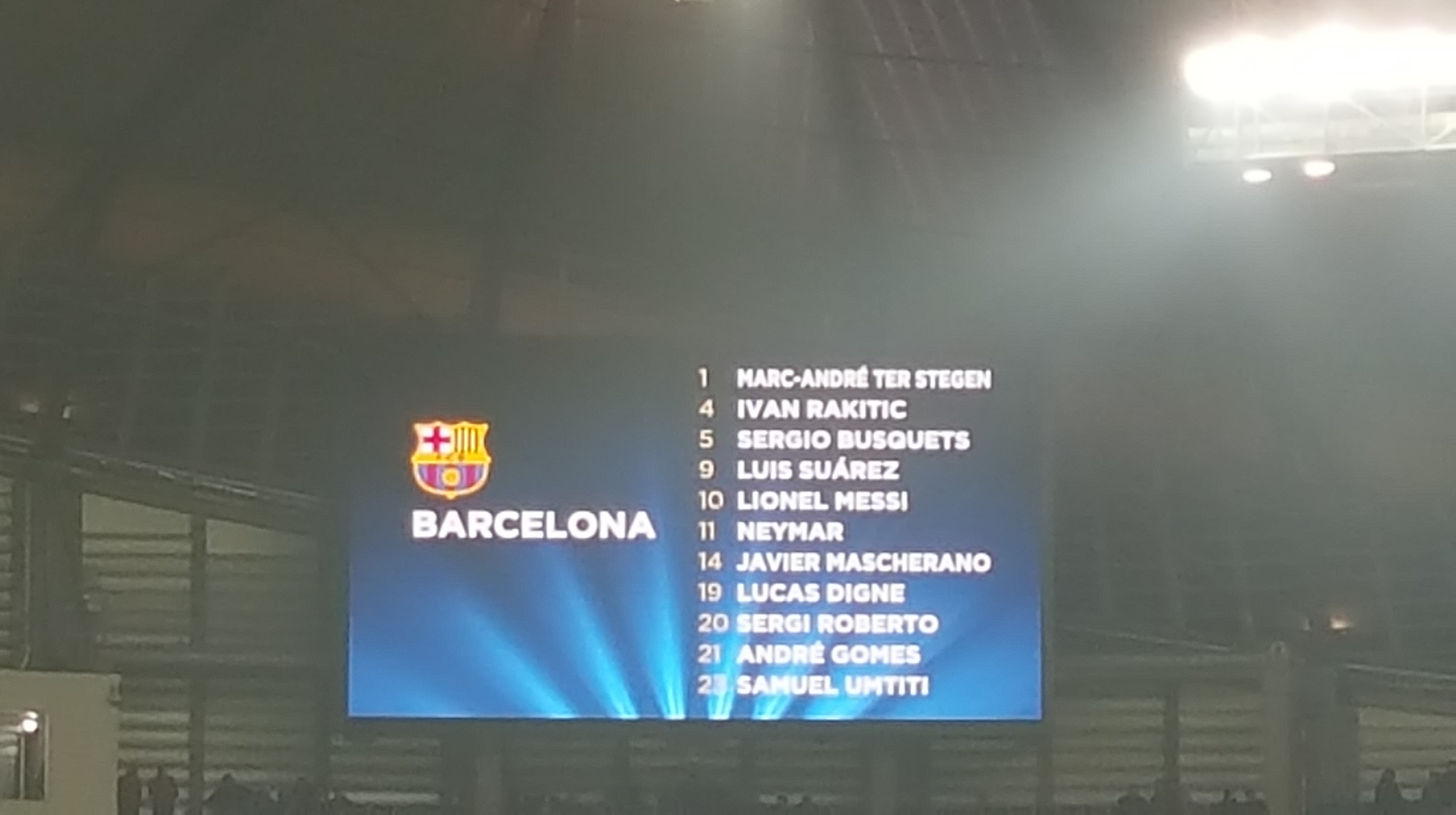 오늘 바르셀로나의 라인업.