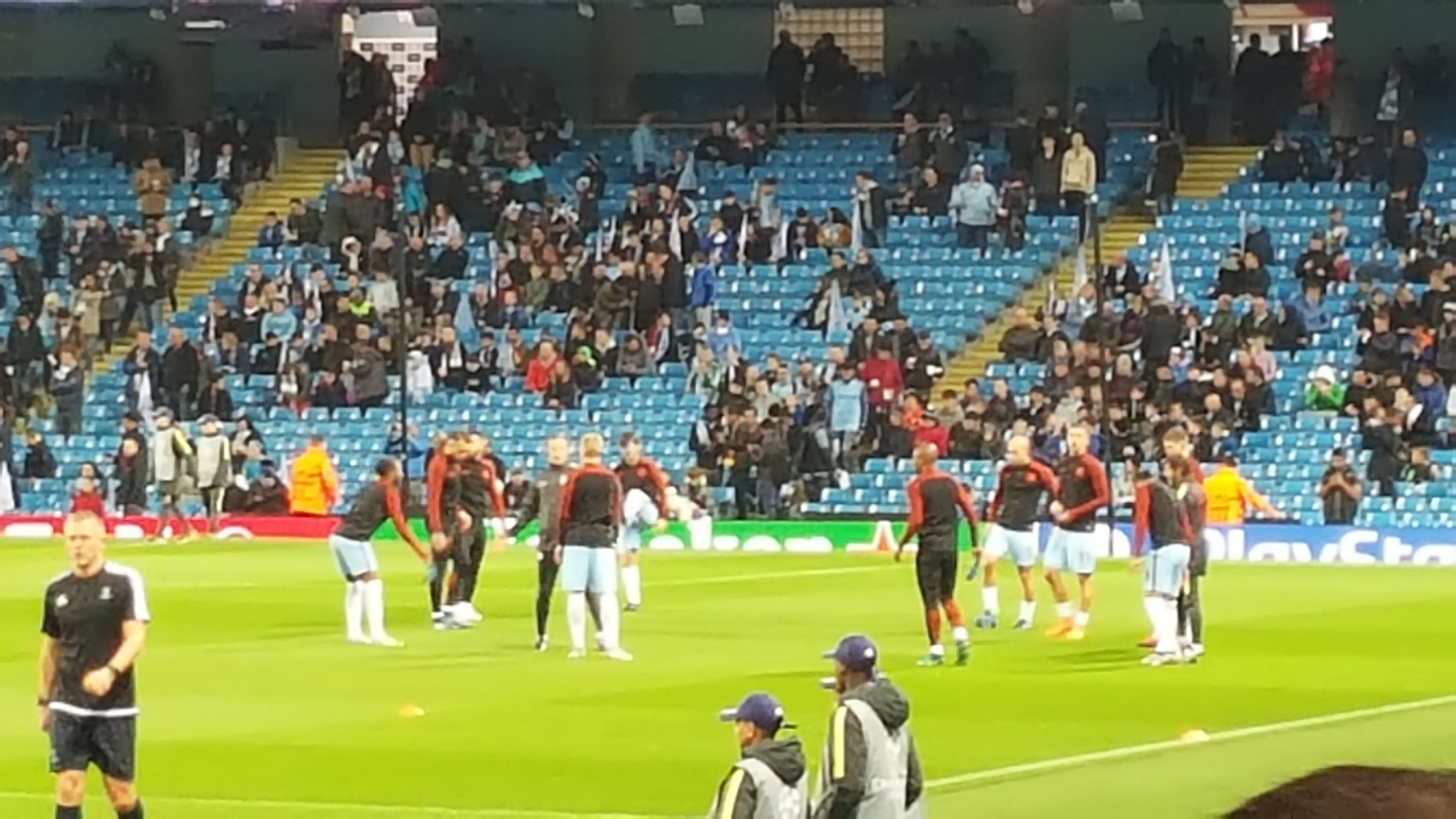 버스가 정면으로 돌아 멈추니 펩 과르디올라 감독과 선수들이 하나씩 내렸다. 장내 아나운서가 한명씩 호명해준다.